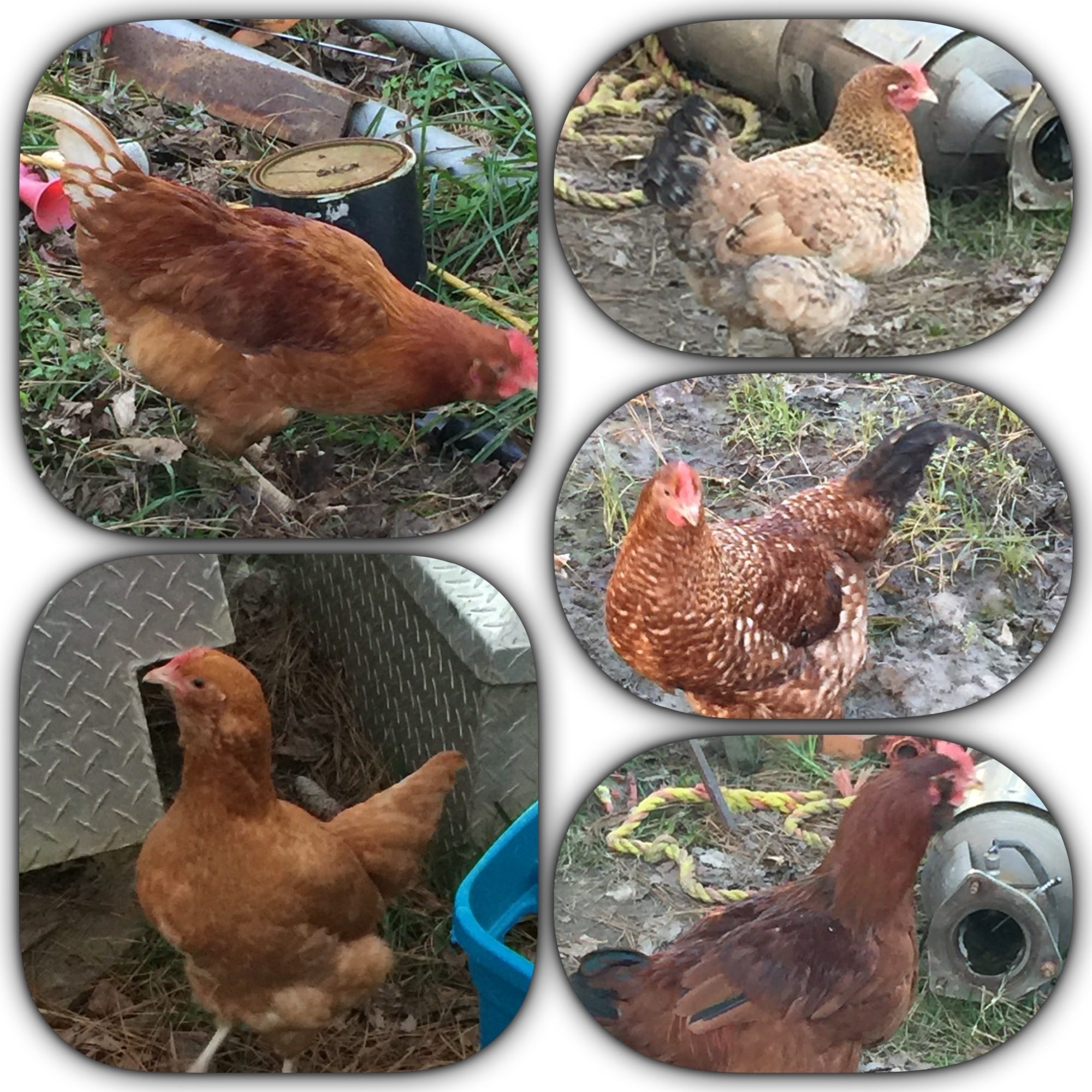The birds on the left, top is a cockerel - see the darker shade of red on the shoulder/wing area; bottom is a pullet- small barely pink comb and even coloring.