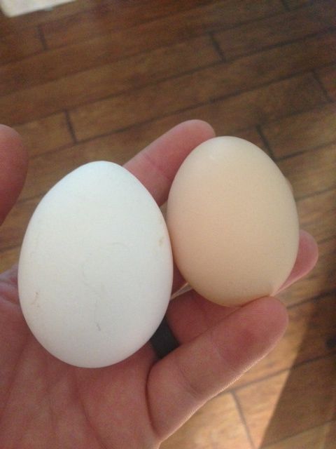 I have 7 chickens. 1 hen and 6 pullets. My hen has been laying all summer long. Some of the pullets just started joining her this week. On Monday I had 3 eggs in my nesting boxes. 2 large brown eggs and one smaller white egg. I have 2 White Leghorn pullets so I figure the small white egg came from one of them. My hen is a Buff Orpington and one of the large brown eggs could have came from her, but the other would have had to come from my RIR's or BSL's. Yesterday upon first inspection I only had 1 large brown egg, but it had a small streak of blood on the shell. About an hour later I checked again and there was a small, almost translucent egg with a rubbery shell.