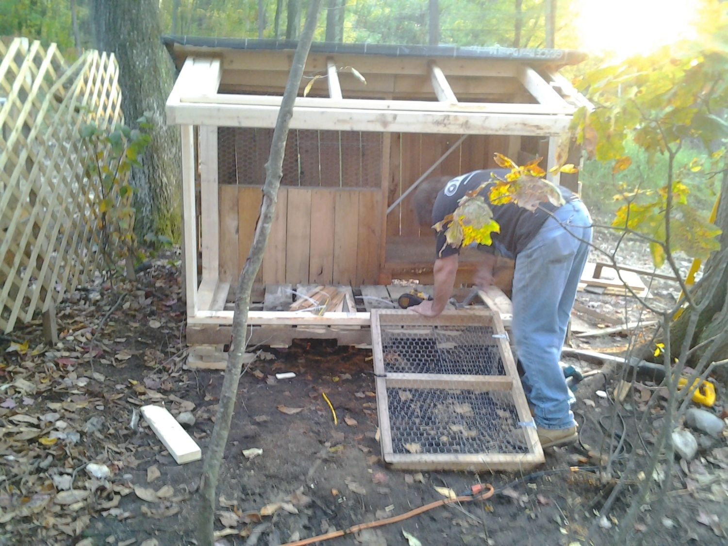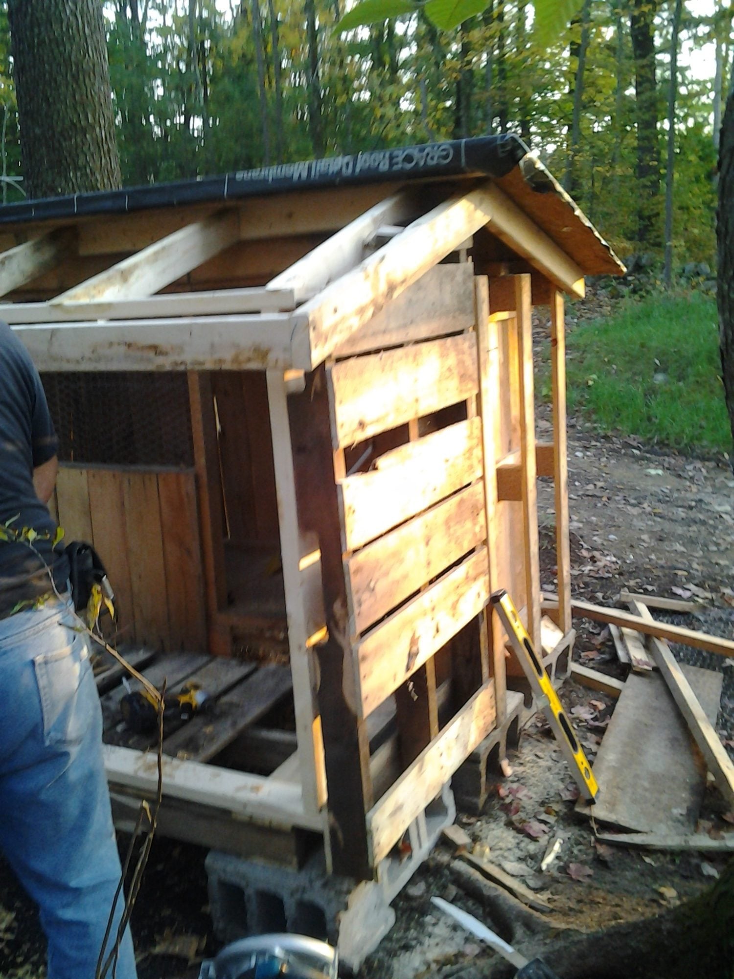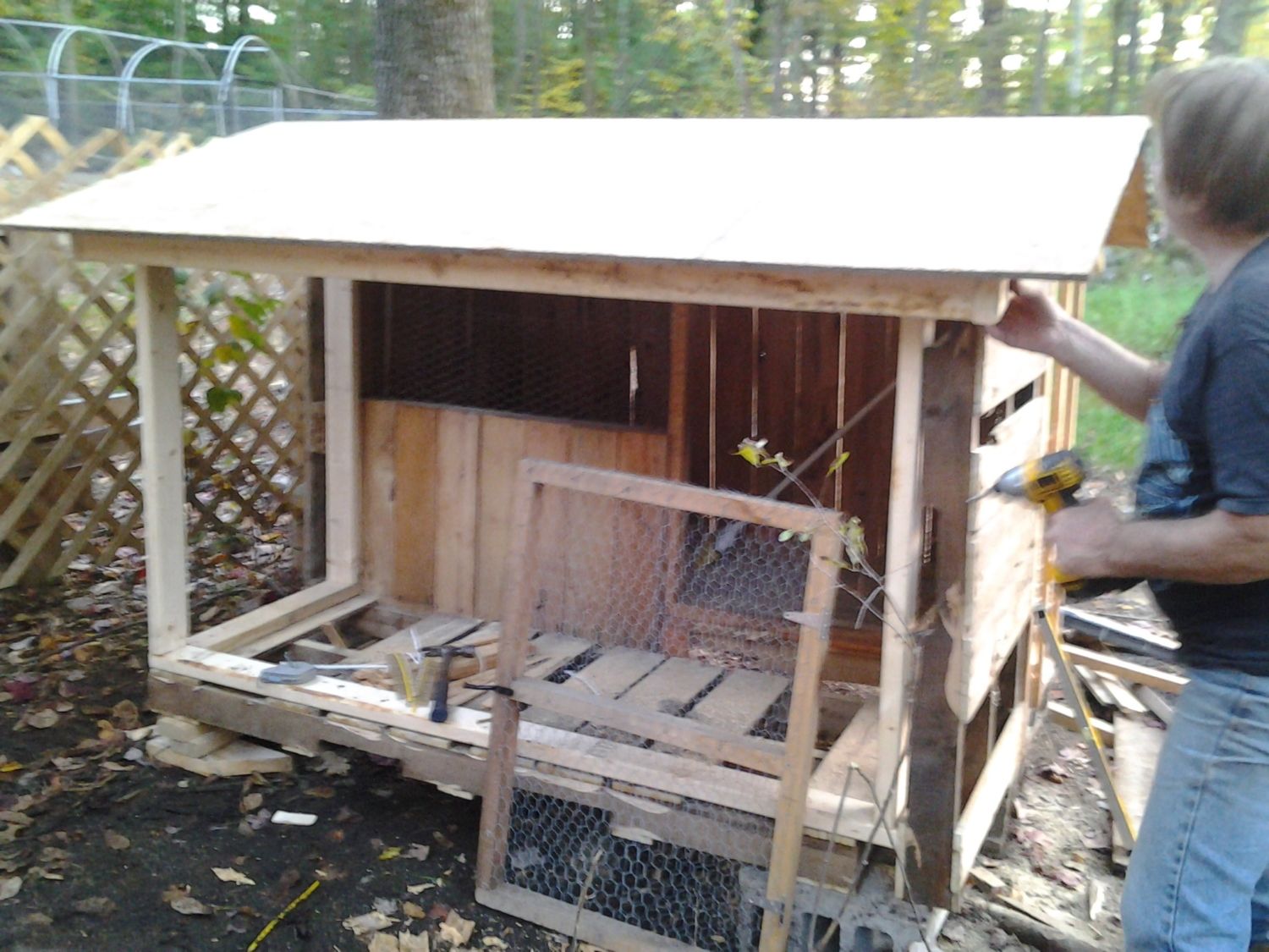 So I have a small coop that I was using for my 2BBWs over the summer. They were recently processed and since the small coop was vacant I couldnt help myself but get more chicks. So I decided to put an addition on it and make a small chicken coop. The first pics are of before ANd here is the progress from yesterdays build edited to make the pics larger
