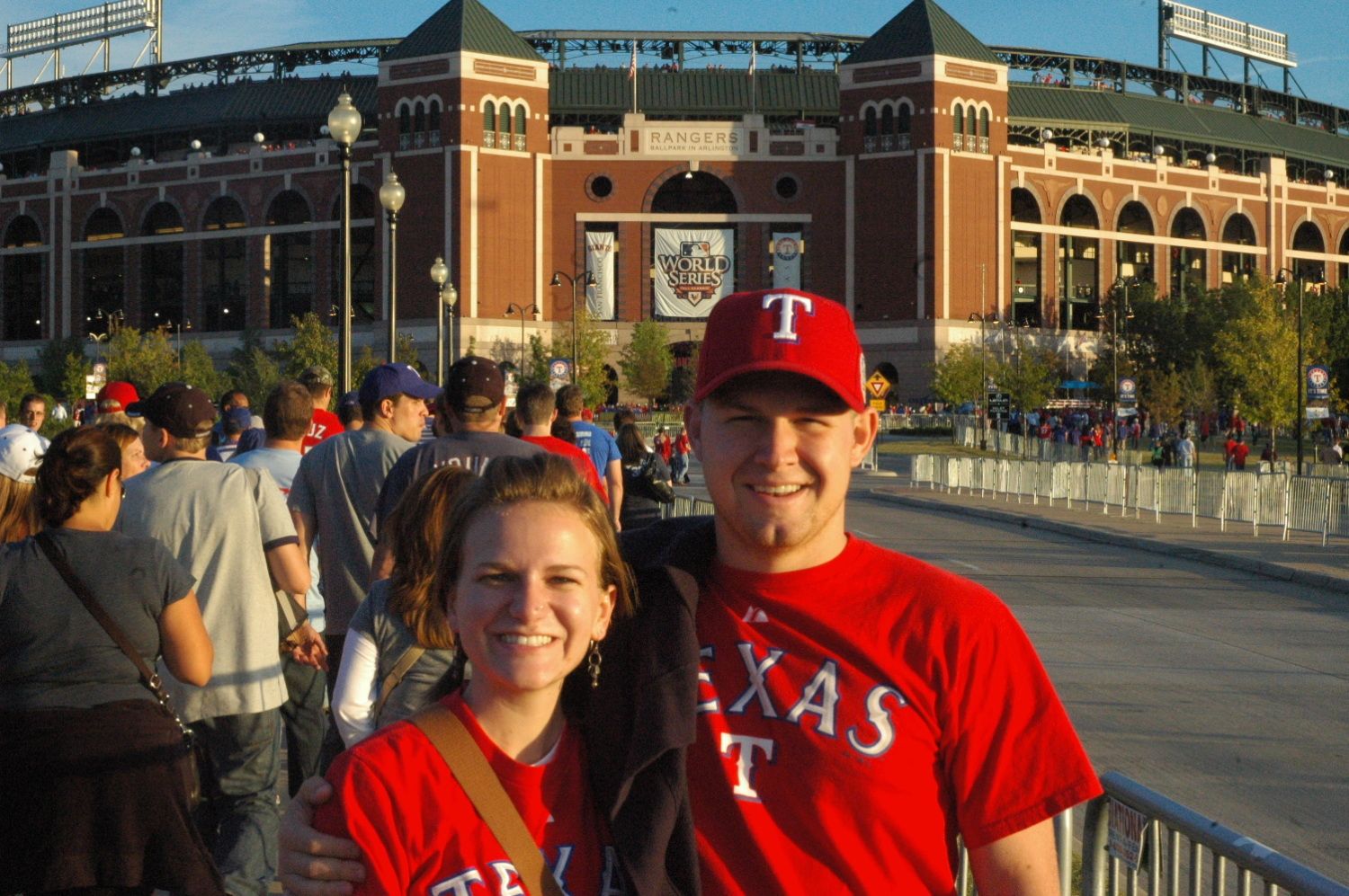 My wife and I before the our first of three world series games (This one Rangers vs Giants). Both of us being big Rangers fans, the last couple of years have been great.