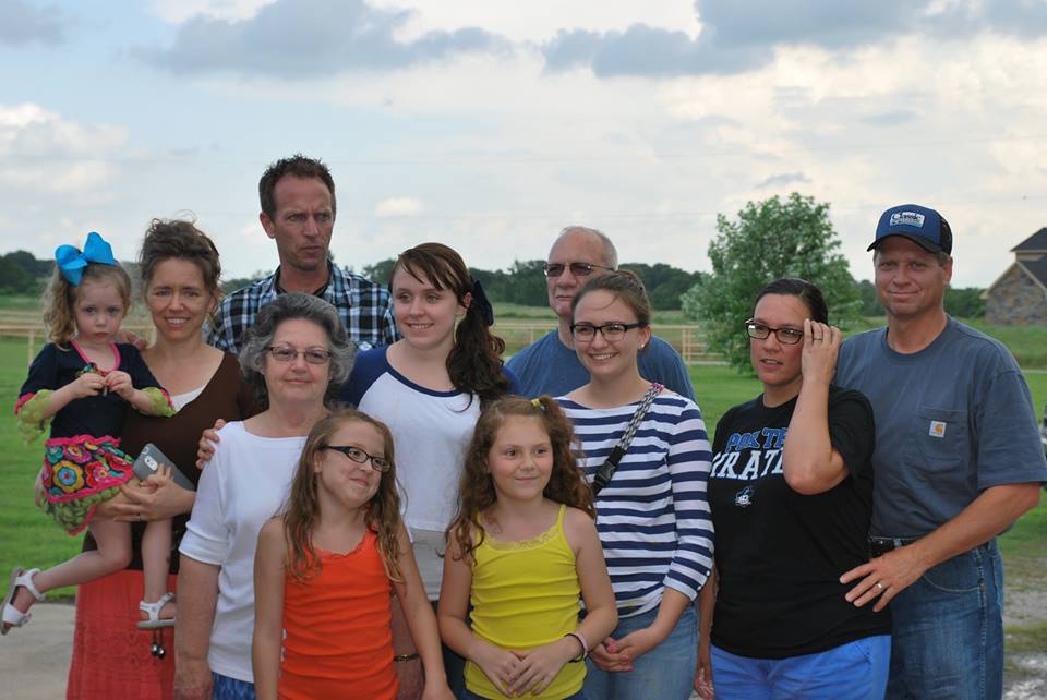 Here is the majority of my family. I am the one in the striped shirt. My mom is on the right and sister and grandma are on left. Two youngest sisters in the front row. Aunt and uncle on the far left with their youngest(They have three more.). Step-dad on the right. And my grandpa behind me. Were like the saying says, "Were like fudge: sweet with a few nuts.".