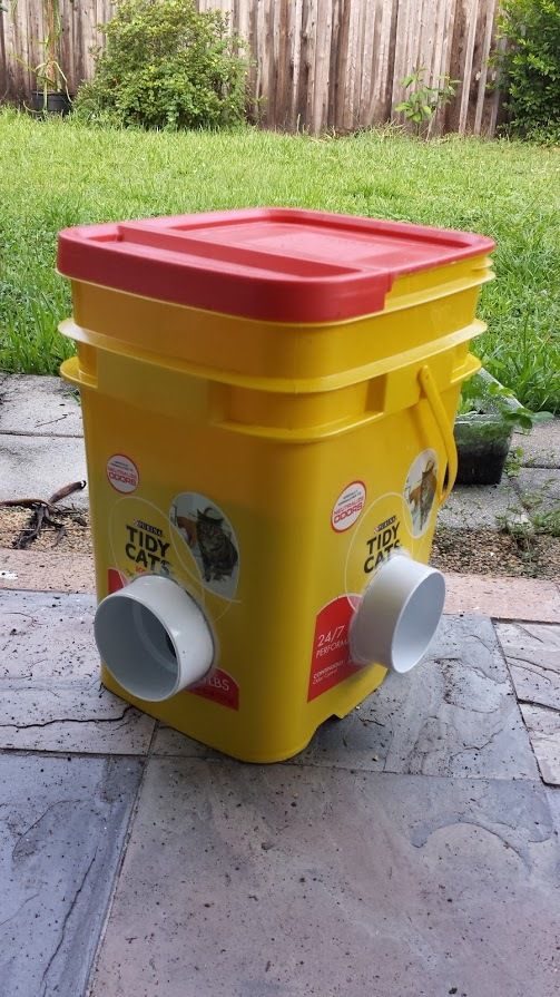 Jan 24, 2017 #11 B bento In the Brooder Joined Jun 23, 2016 Messages 24 Reaction score 3 Points 14 Location Orlando I made one of these bucket feeder for my chicken. No mess or waste at all. The chickens stick their heads into the PVC elbows to get the food.