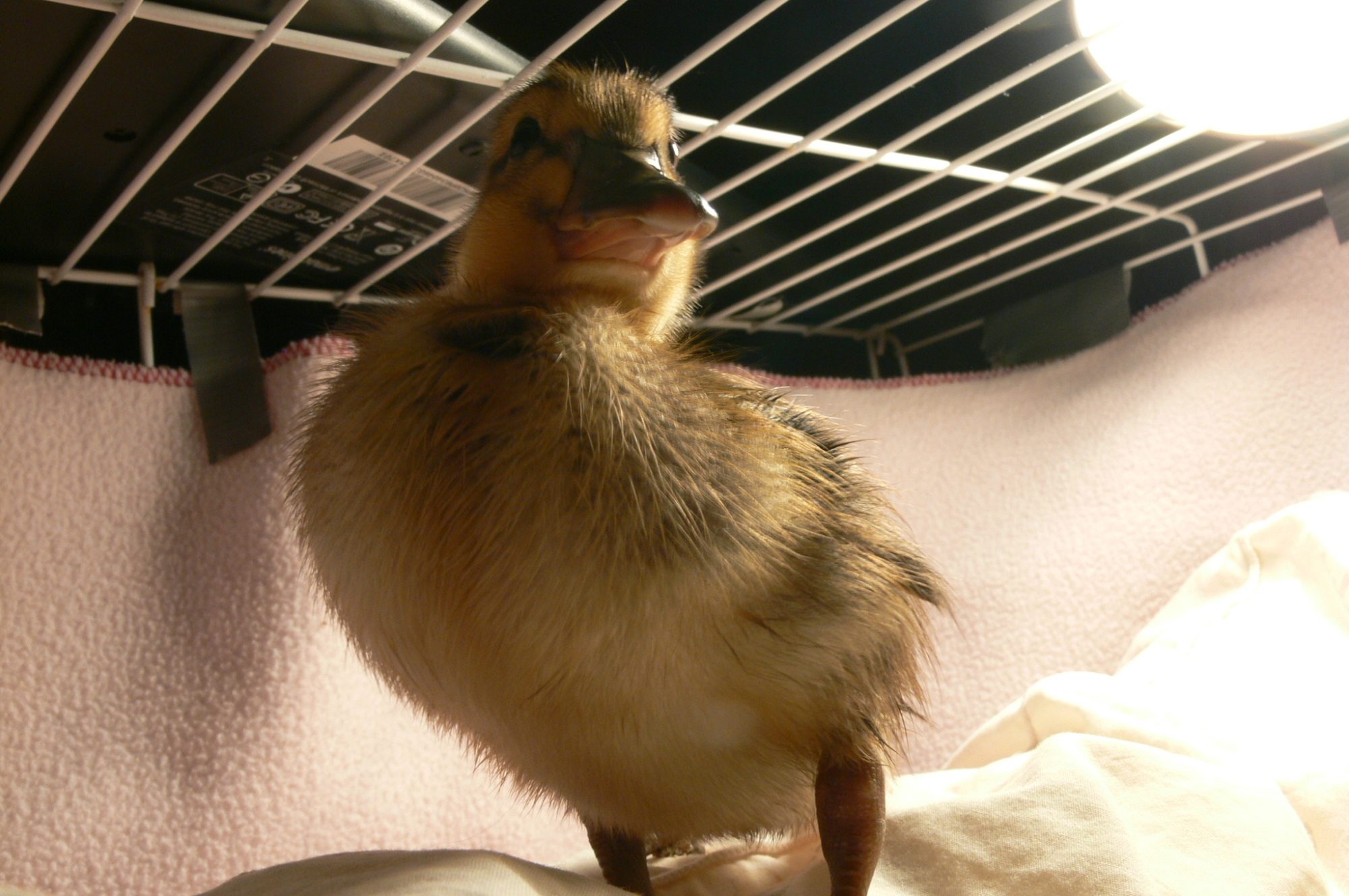 Pyrrhos is about ten days old. After her bath, I noticed that she was going 'bald' in certain places. I was really worried, but after looking it up, it seems like it's totally normal for ducklings to go through a bald phase before their pretty feathers come in. She does seem a little young to me, but she also gets baths about twice a day, sometimes three times a day if her baths have to be cut short. Generally, each bath is about ten minutes long(only because she doesn't like to be in it for very long; I guess because she's alone).