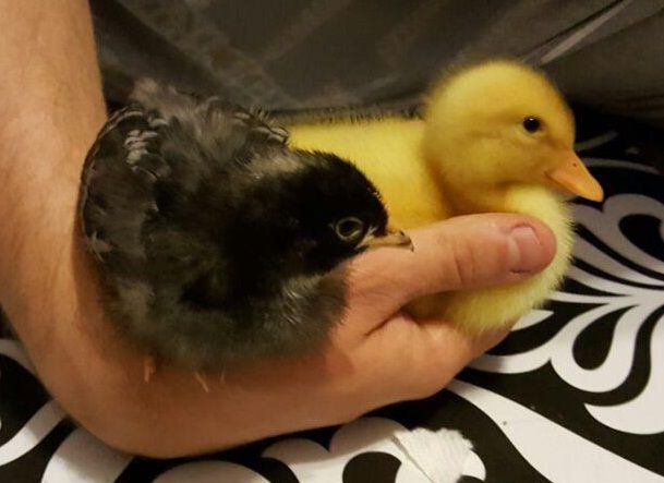 I got a duckling and a chick at the same time and raised them together as friends.