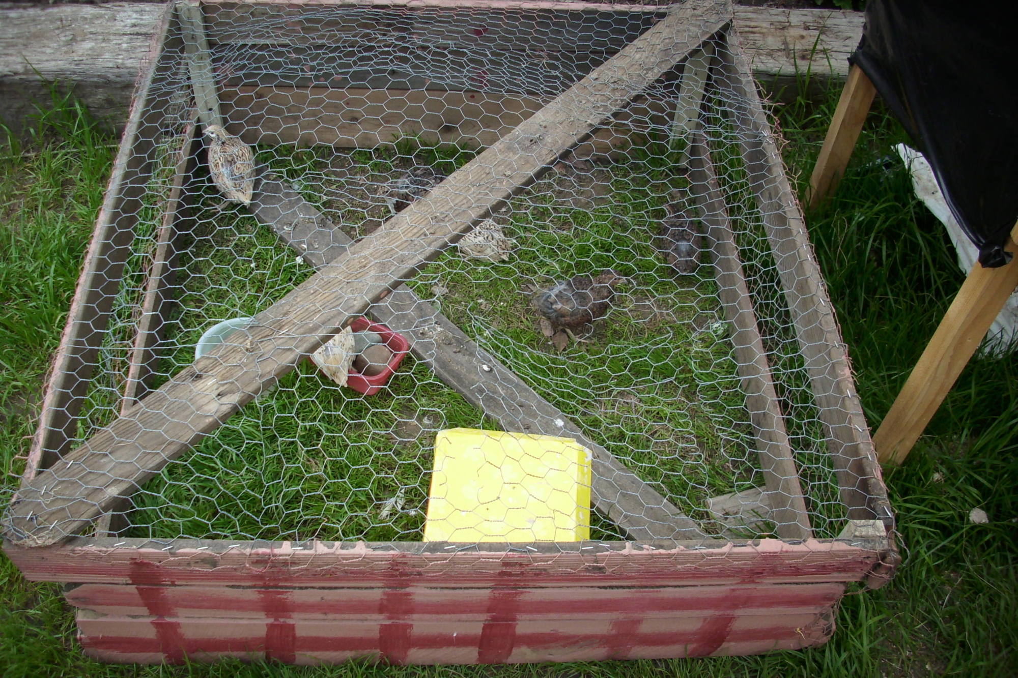I am posting some pictures of my happy quail in their ground cage.