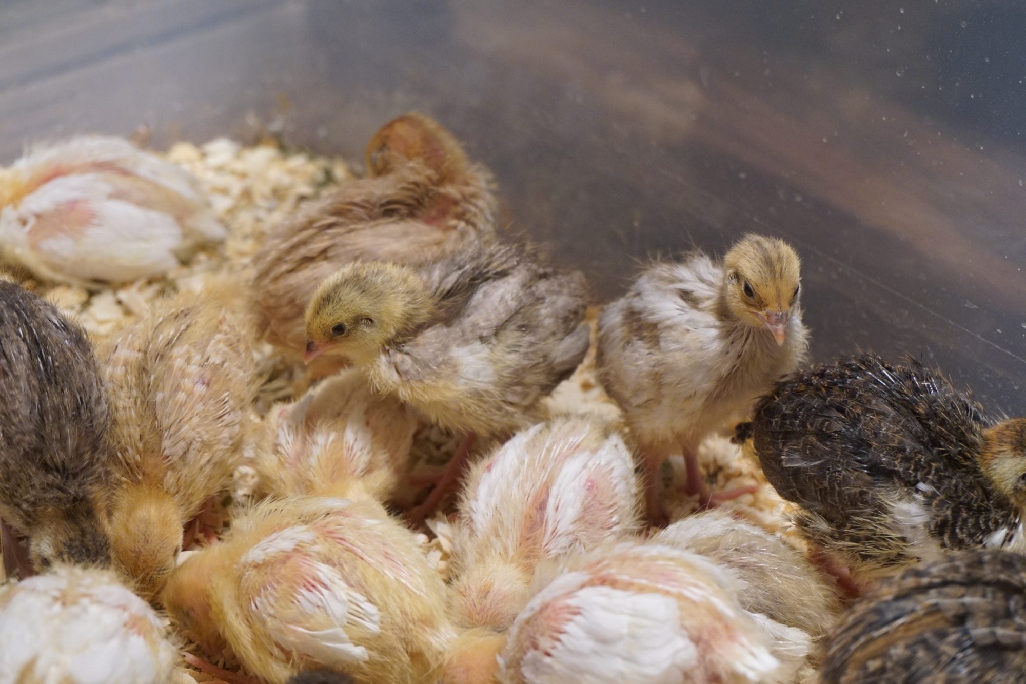 They are 2 weeks old, almost fully feathered except their heads. The only wild color one I already gave away because she had a spotted breast. I've been trying to guess based on their body size. Thinking that the ones that are getting plumper are going to be girls and the skinnier more active ones are going to be boys?