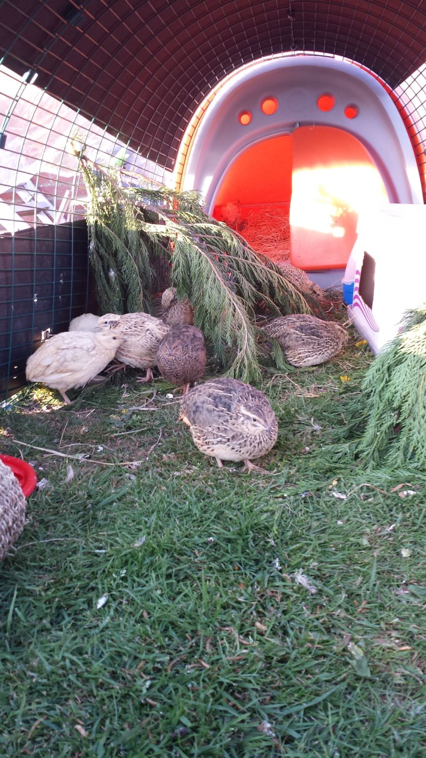 Dani you are right about the cat, i went out last night to feed the foxes and there was a black cat sat next to their pen, like you i have a plastic grid all round mine to stop the wind and rain mainly but hopefully keep the cat away. mine has started to lay in the pen as well now, so hubby has put in another door for me, it really does make life a lot easier.Aww they look happymine lay in nest box and any where in run I have been thinking of putting another door in the run too ! X I woke up with the dawn chours this am to find a cat cat by their eglu and it didn't run away with me knocking on window so I went out at 5.50am like a crazy quail lady to check on them but my mesh has worked well no problems can only watch them not hurt them ! X![]()