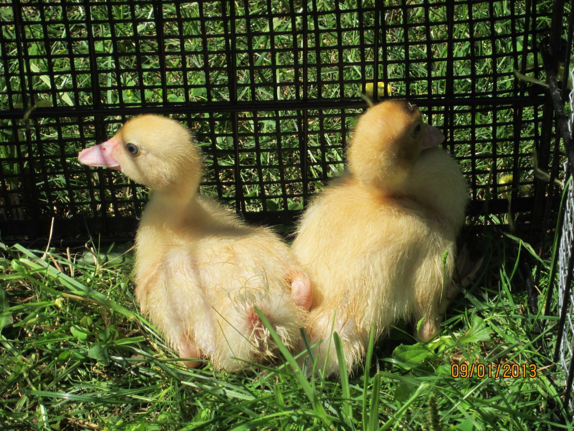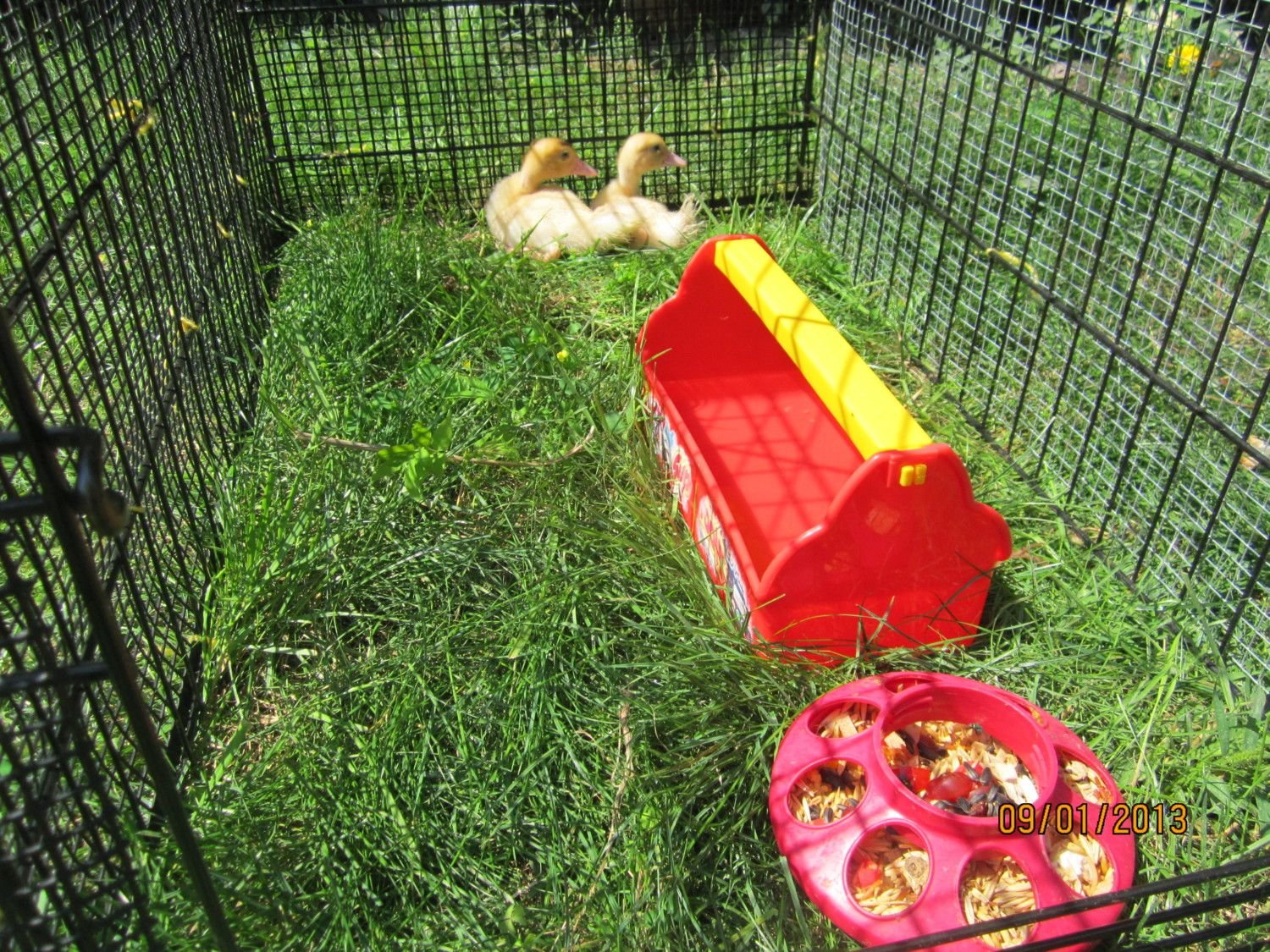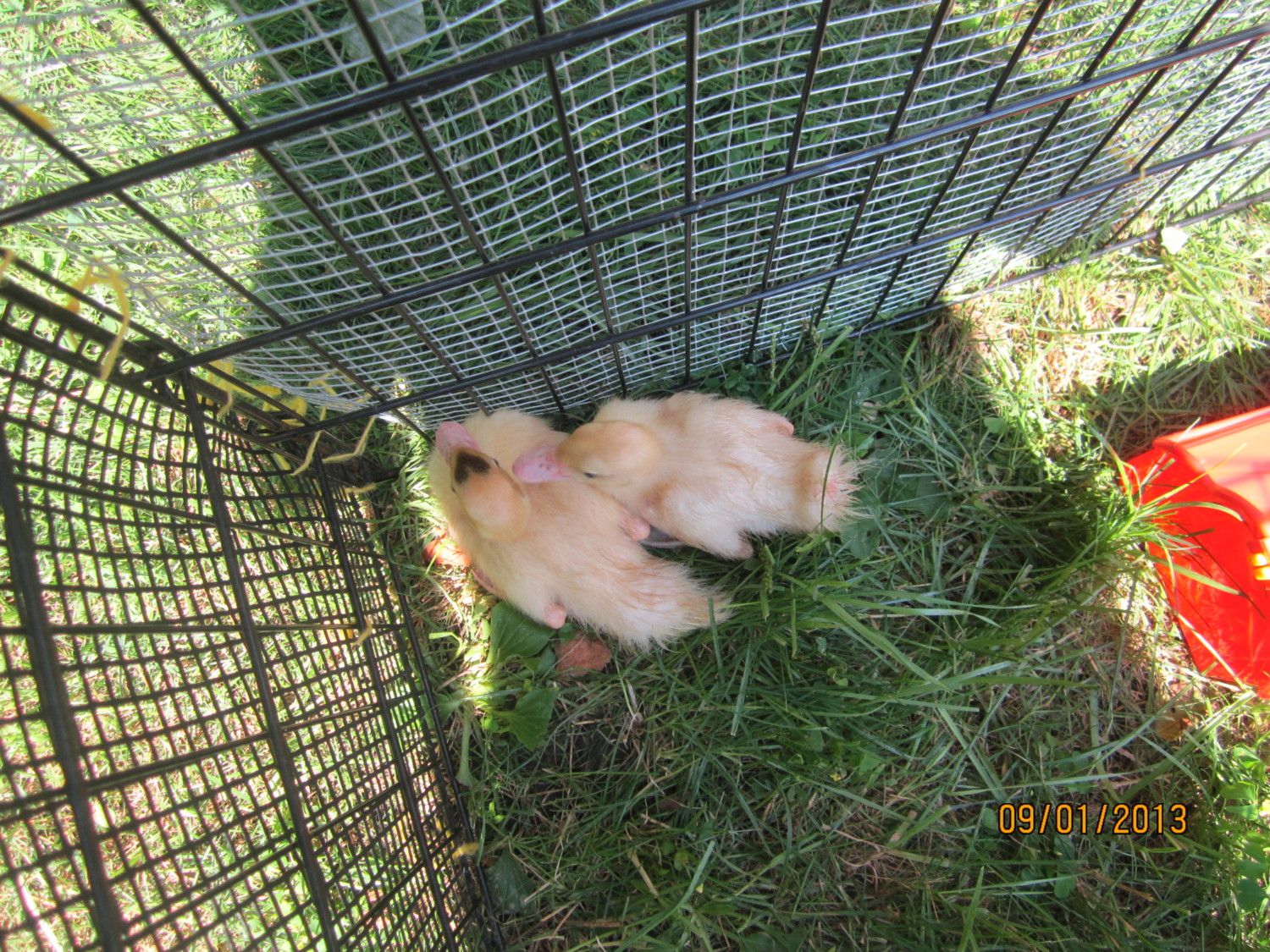 Yesterday I put their cage inside the chicken run intending to keep them inside the cage for a while.