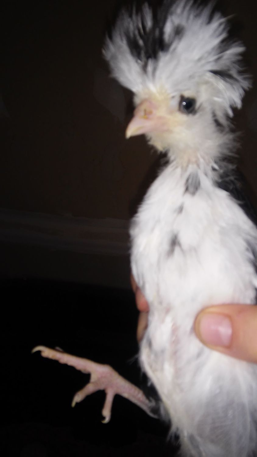 I purchased 2 Tolbunt Polish Chicks. I was told they were 4 weeks old (I have had them 2 weeks now). I have some questions about them. I am a first time chicken owner and have 5 month old silkie and 2 orpingtons. I got these chicks to add to my flock.