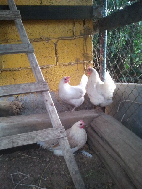 We recently got 3 chickens from friends, who had got them from a battery. I'm not sure how old they are exactly, but they said they got them because they were sort of past their 'egg-laying prime'. They did still lay eggs, though. Anyway the chickens have been with us for about a week now and they seem happy! I was wondering what type of chickens they are... they are not very big, white with grey legs and some have some brown feathers. Here's a picture: