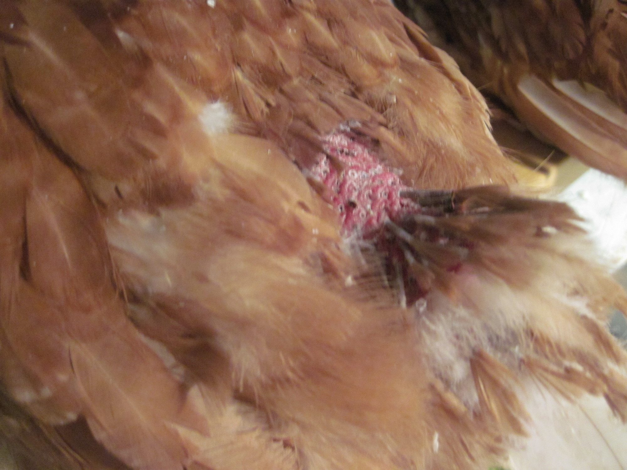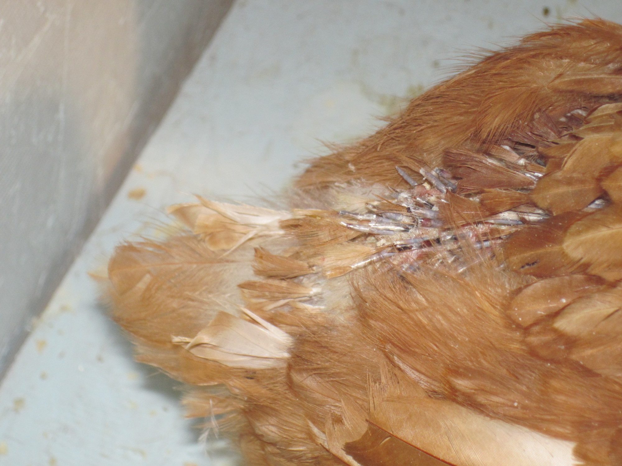He said that it was in part the reason he was selling, they were constantly being picked on by the other flock/breed and were growing back, pointed out some dark pins which he said were new feathers.
