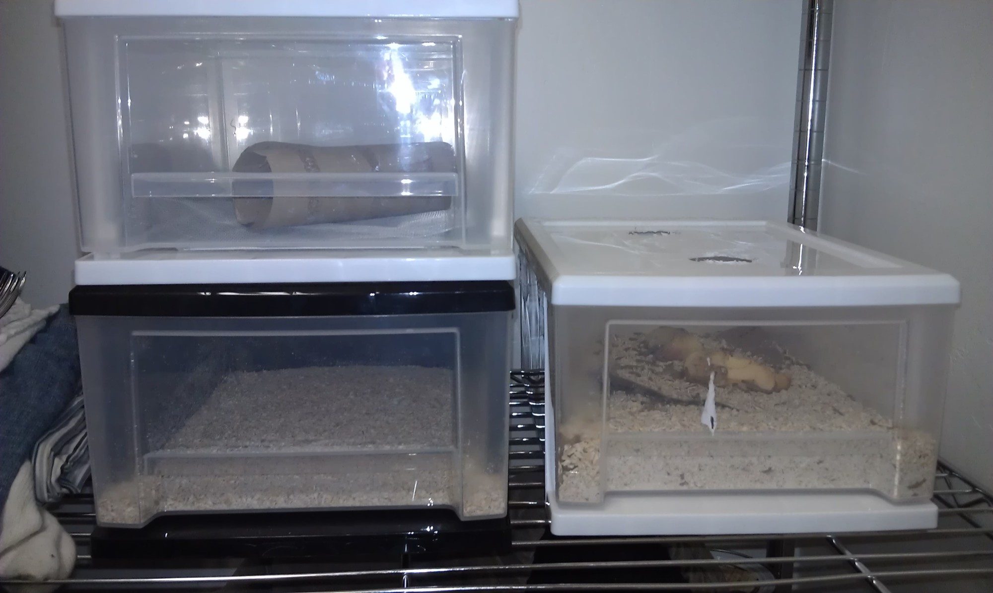 I killed mine with kindness lol I also didn't grind my bedding substrate before adding it and the Instant variety of oatmeal just soaks up the moisture. mmm...not a pro but if you keep a paper cover on the substrate, such as a piece of brown paper sacking, the beetles will never, ever even want to escape. They seek the dark and run from light. Plus they can but do not fly. The only time I've ever even heard of them escaping or attempting flight is if the bin was kept in the light or allowed to get bone dry.These trays don't look to tall...no problems with escaping beetles? Hubby is apprehensive about me raising beetles, lol. I am trying to get some reassurance from you pros.