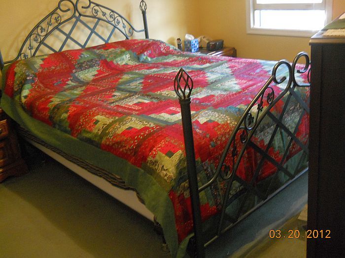 Thanks! Appreciate all the input. I'm not fond of red, personally, but the greens are so awesome (my favorite color) that it's been fun to do. I have 7 blocks left to finish, then can start on the border, I think; that is, if I just do a plain border. I see that most log cabin quilts don't have complicated borders, probably since there is so much going on in the quilt itself.