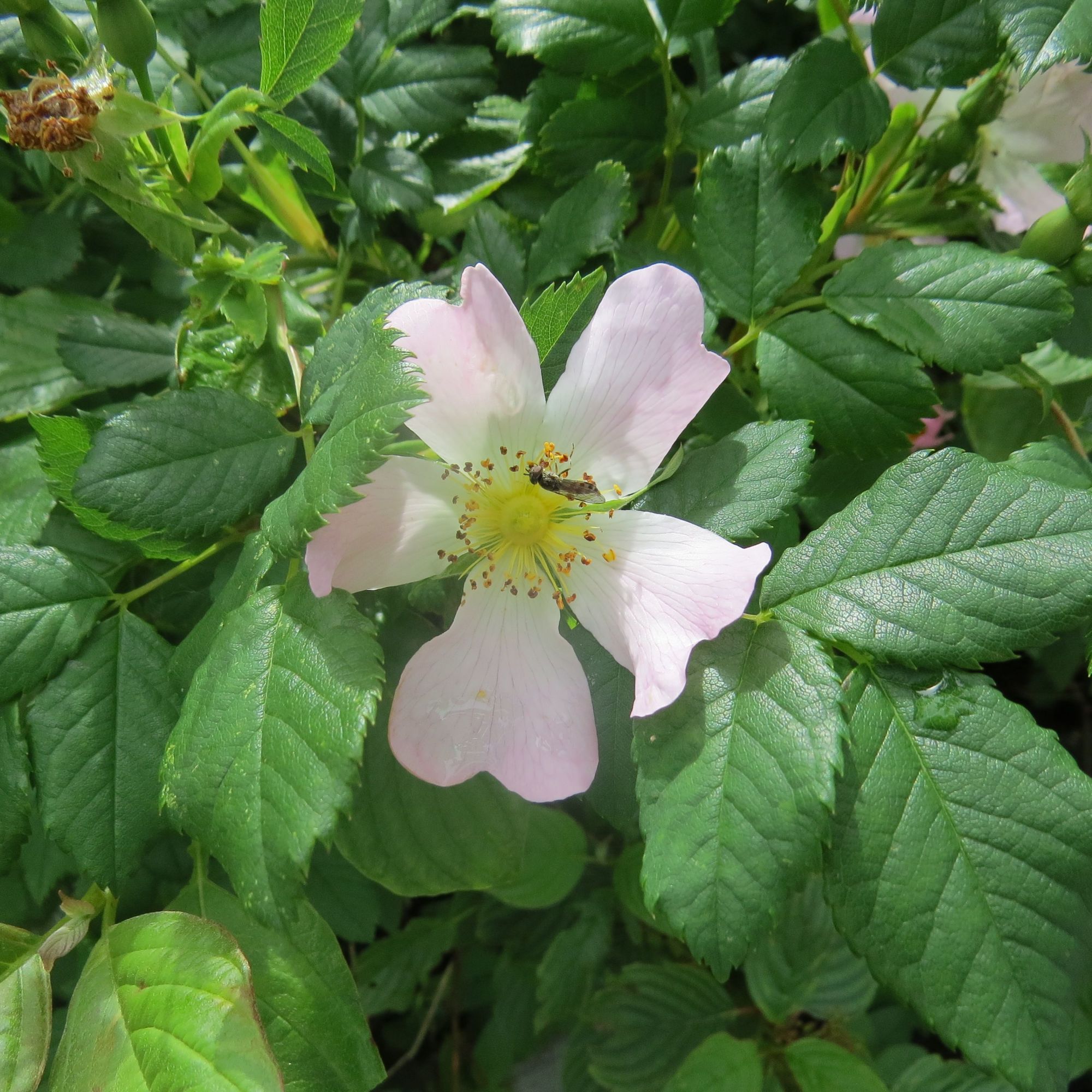 One hand for the umbrella, one hand for weedingUmbrella would be great, unfortunately I only have 2 hands and this garden is my project so to this point; not much help. Well she was going to help but the rains came, she looked out seen my crawling around the ground in the pouring rain and had to yell at me to come in. I wanted to finish at least one row, my Roma's and Peas will be happier now. My Roma's have little green maters on them, almost everything has flowered and is looking real healthy, despite the weed competition.