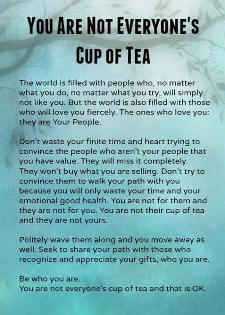 Perfect Sumi! Guess you only have to worry if you are nobody's cup of tea!
