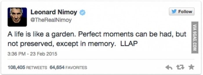 Yes, R.I.P. , I'm a treker from way back. Loved watching the original series with my dad (R.I.P. too!) And love the second as well!