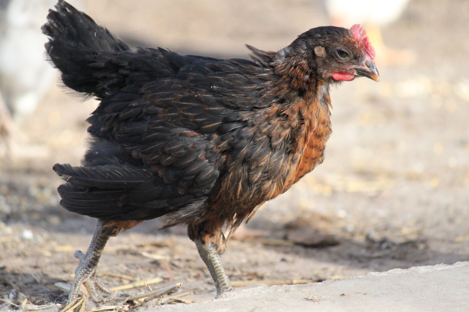 Perhaps as a result of his handicap and the special care he had to receive, Samurai developed a sweet and friendly nature towards people. He was always quick to rush up and greet me, and was happy to gently nibble treats out of my hand when they were offered. His sweet nature made the reality of his predicament all the harder to bear--eventually, we were going to have to put Samurai down. Though we do the best we can for all of our chickens, there was no way for Samurai to live a normal, healthy life. Prolonging it would have caused him pain and loneliness.