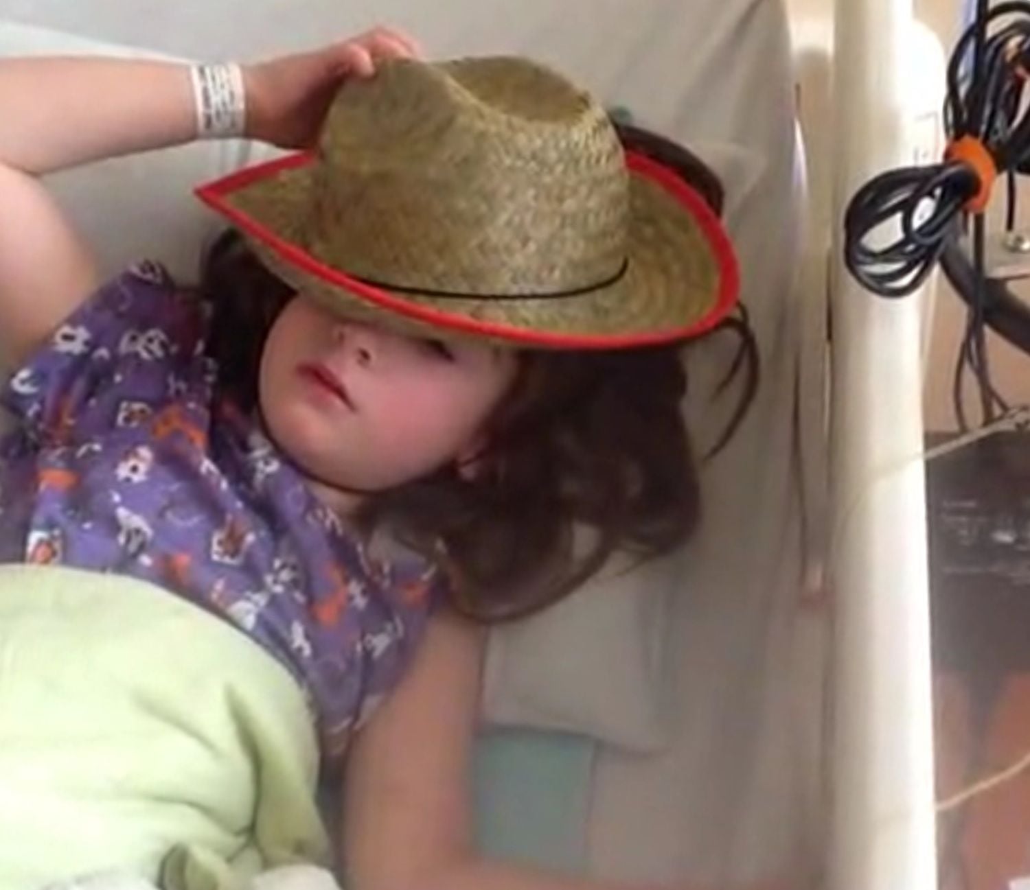 Sorry, meant to post these earlier this morning after Facetiming with the kids and Kendra but ended up out and about getting errands run that I should have done yesterday. As requested, Kendra and her comforting cowboy hat.