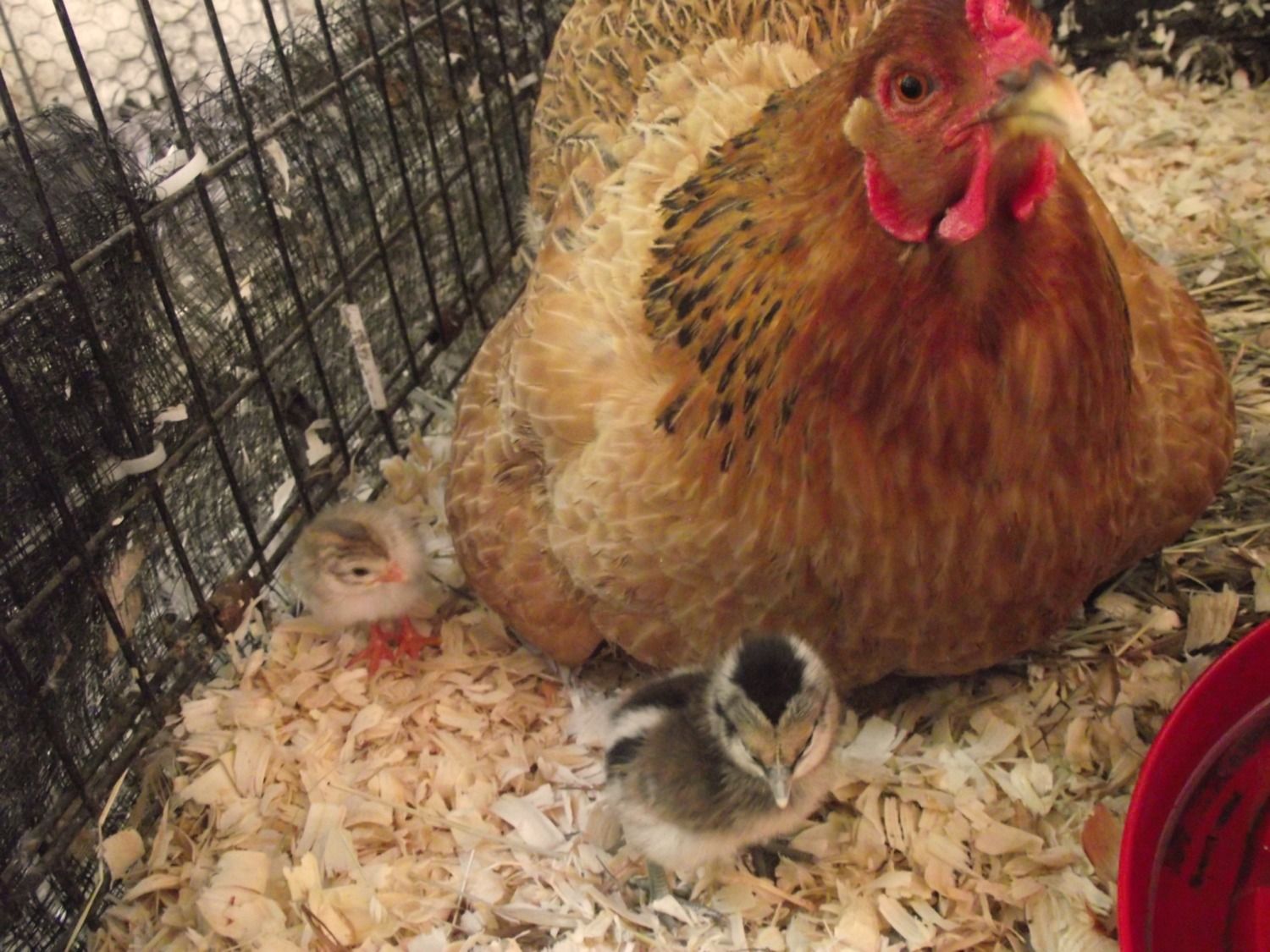 Carefully raised her chicks and slept on the ground with them until they could fly into the tree. The dads all helped too. I had more hatch yesterday. We'll see how the new mama does