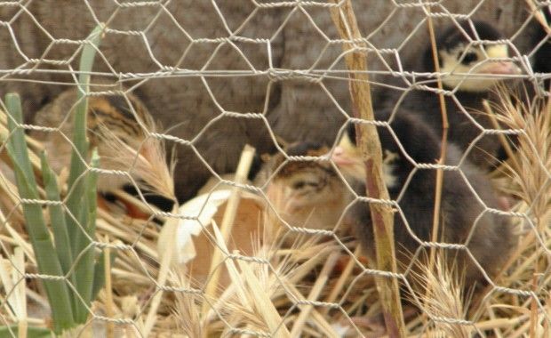 we have blue slate hens no toms and royal palm hens, 2 toms, funny thing is where did the black baby turkeys come from ?