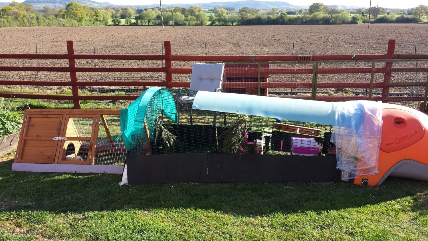 like Dani i also have an eglu with an ark attached to mine. i move mine around every 3 days. they love the fresh grass.