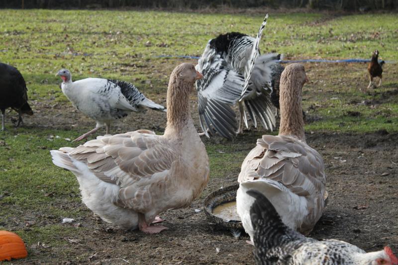 Same here but I look at that as a possible problem in the making. My geese will grab the feathers of the chickens, and try to chase off the turkeys. I would never consider feeding geese out of my hands. It will send the wrong message to them.This has been my experience this year as well.