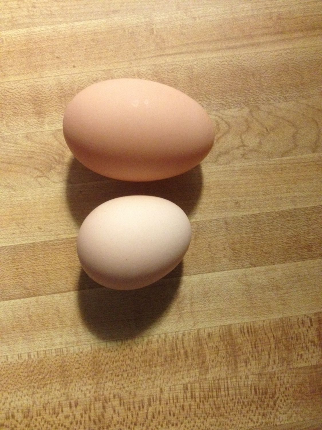 One of my hens laid this monster egg yesterday. The bottom egg is the size we generally get. They're about medium sized eggs. So I was a little shocked when my son brought me that big ol' thing. I used it to cook last nights dinner and it was a double yoker. I've never seen a double yolk egg with 2 fully sized yolks before. Usually they're just smaller to fit inside together. Anyone else have this happen? Is it common for double yoke eggs? I'm just curious and thought I would ask. Wish I had a roo so I could've tried hatching it!