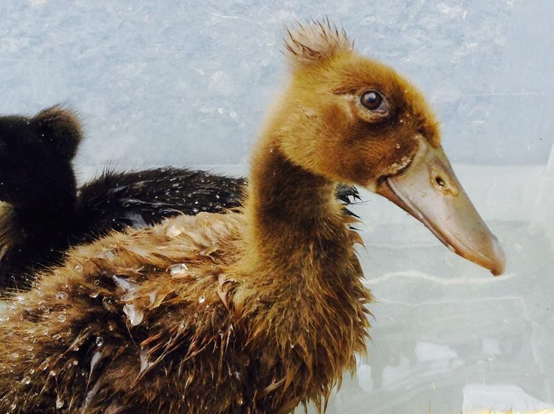 She's very cute. And that poof on her head tho, lol, too funny. She looks runner-ish to me. Very slender and slightly down turned bill. Love that color! Reminds me of my chocolate girl![]()