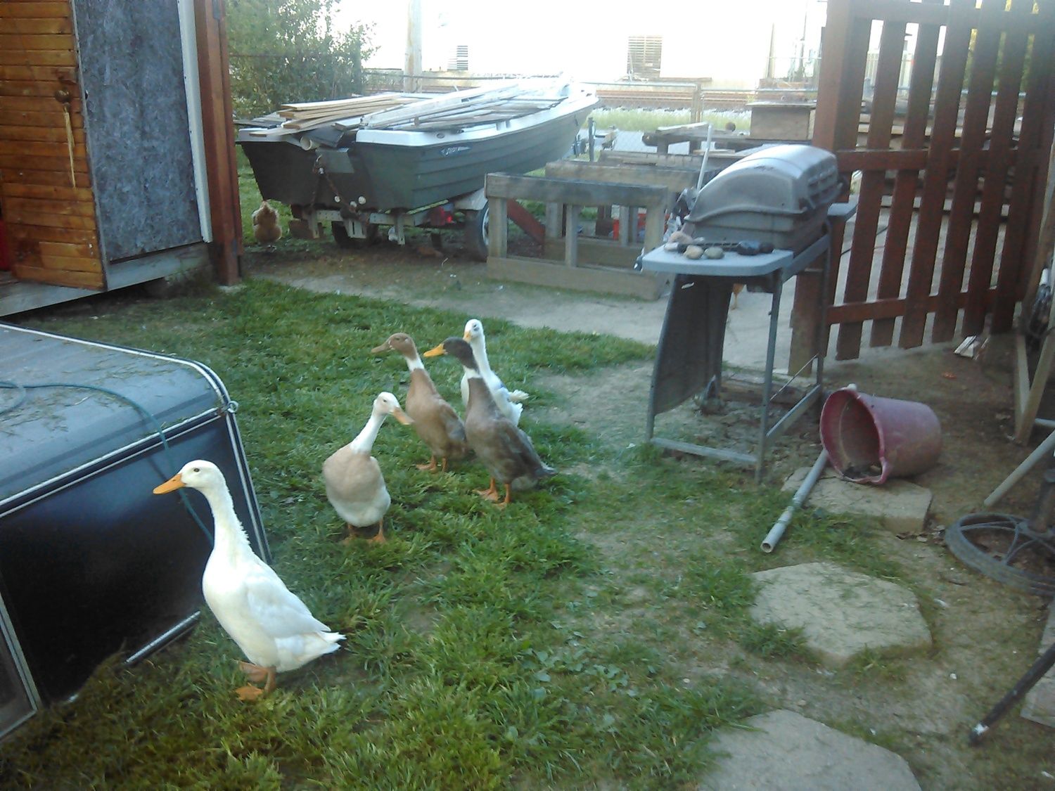 Holly reminds me bit of a runner too, her bill is turned down, and it's the same color as her body now. Crazy right? She has a really long neckI almost lost her yesterday! She escaped into a barn... She never peeps unless she's with her buddies, so I was scared I wouldn't find her. Luckily Prince ( I found out Zoey was a boy) was there and he went straight to the barn and found her! Love that cat