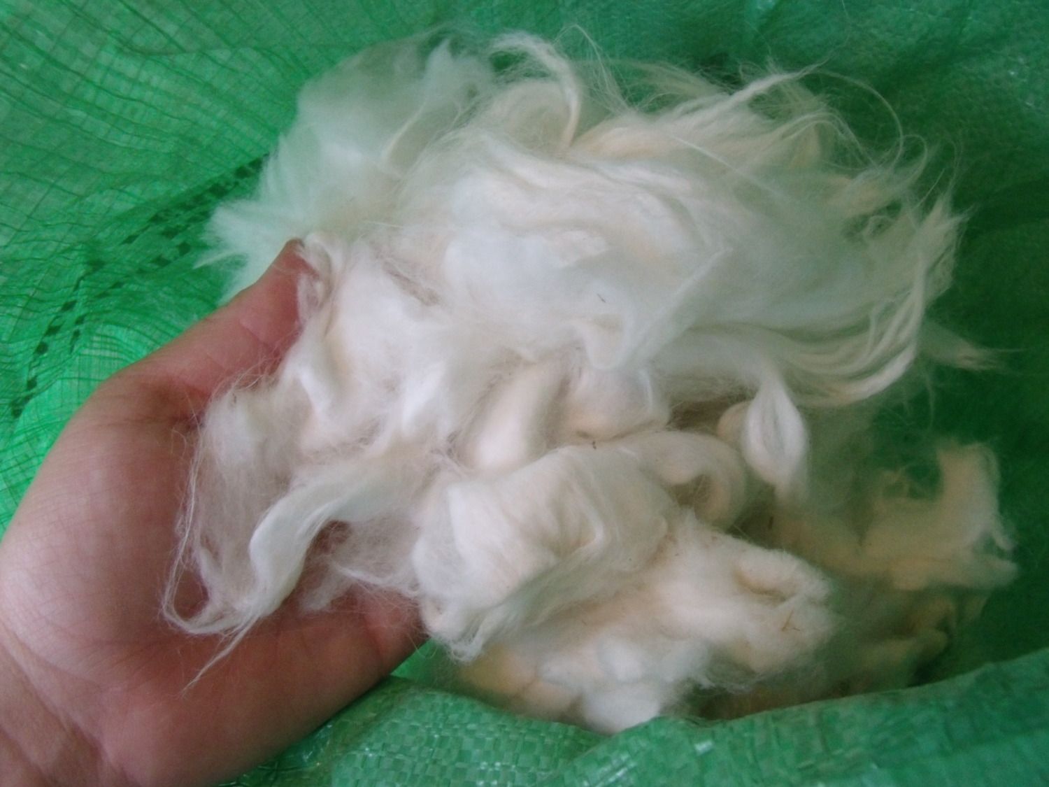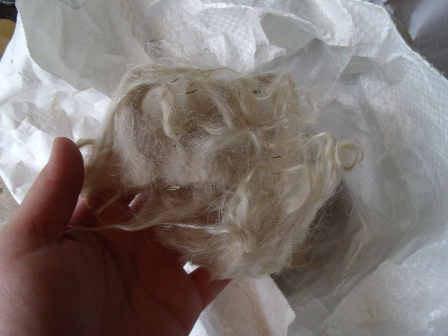 White Pygora, little over half a feed bag full - has knots - Small donation/ Free