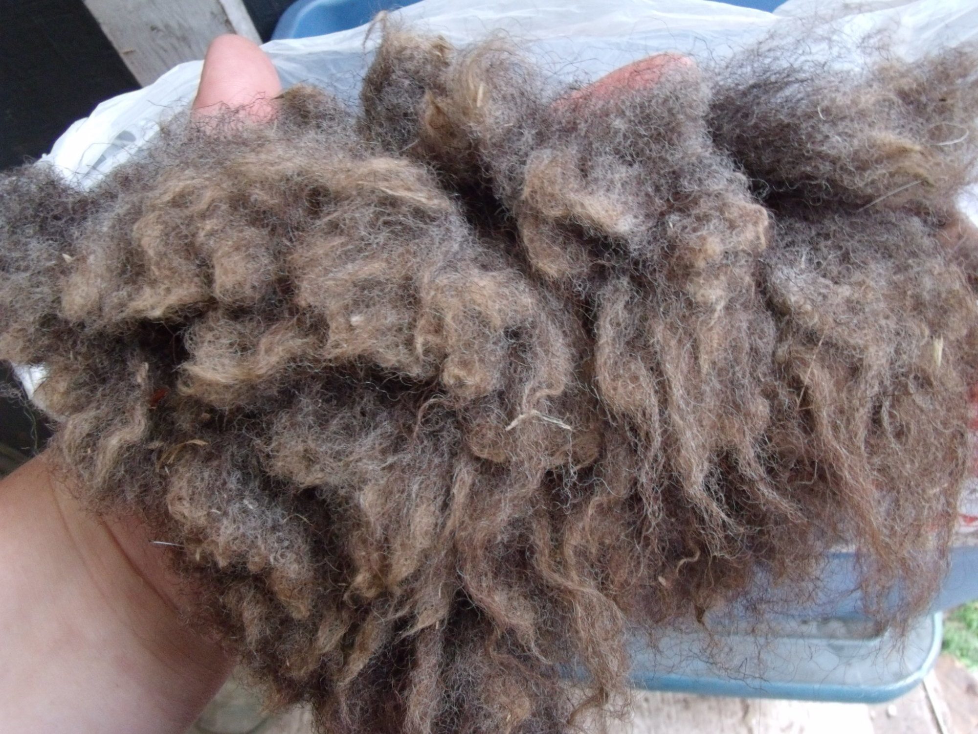 Gray/Brown Pygora, about half a feed bag full - a lot of large pieces from shearing - small donation/ Free