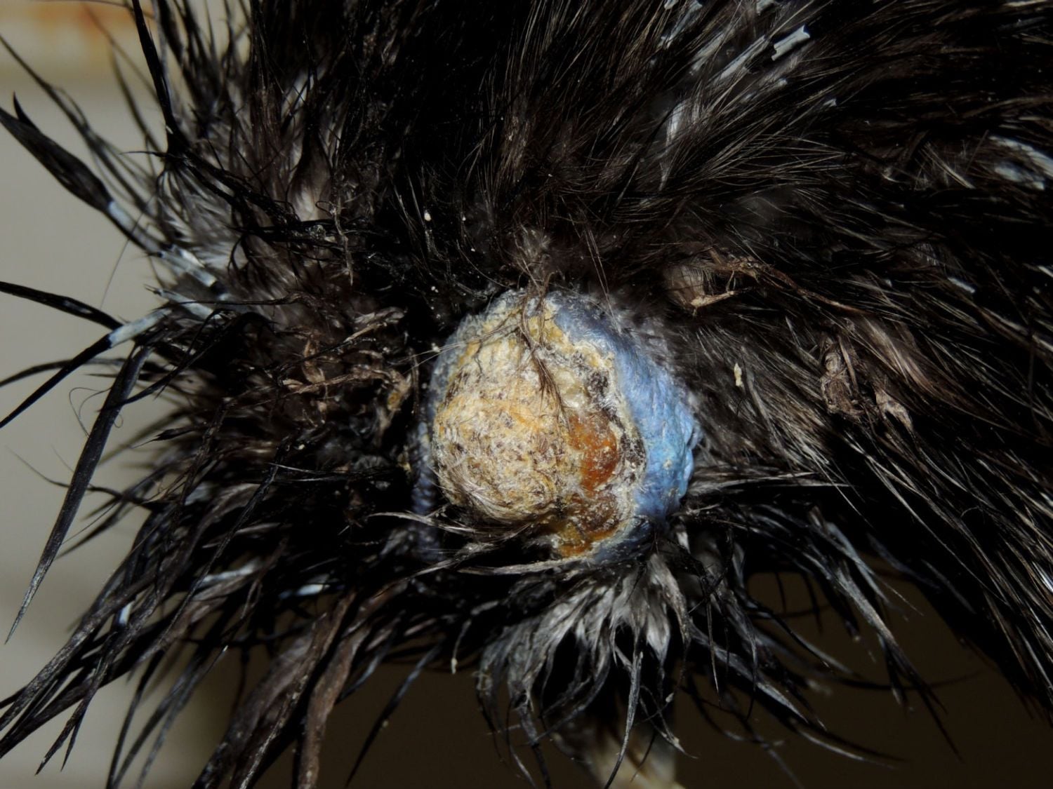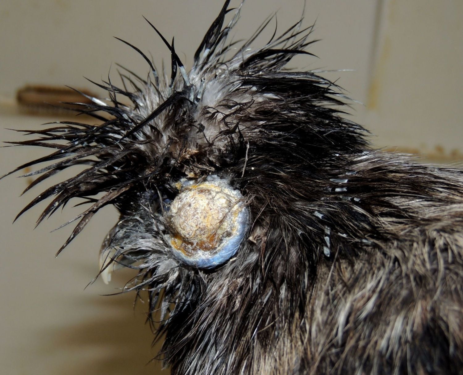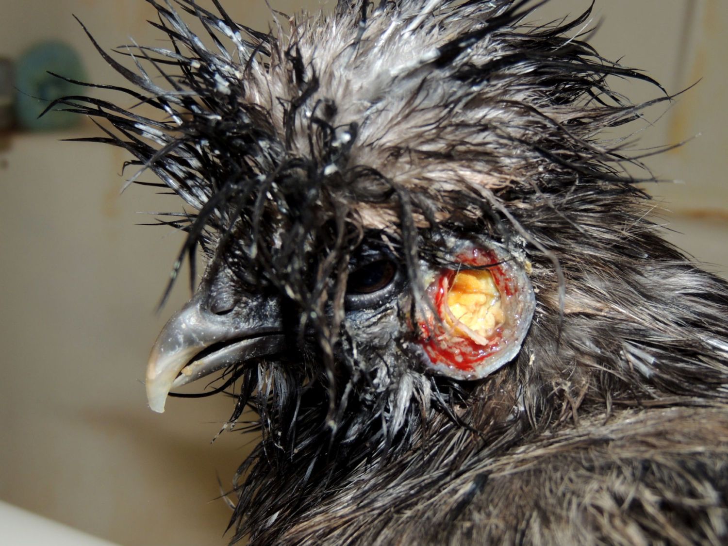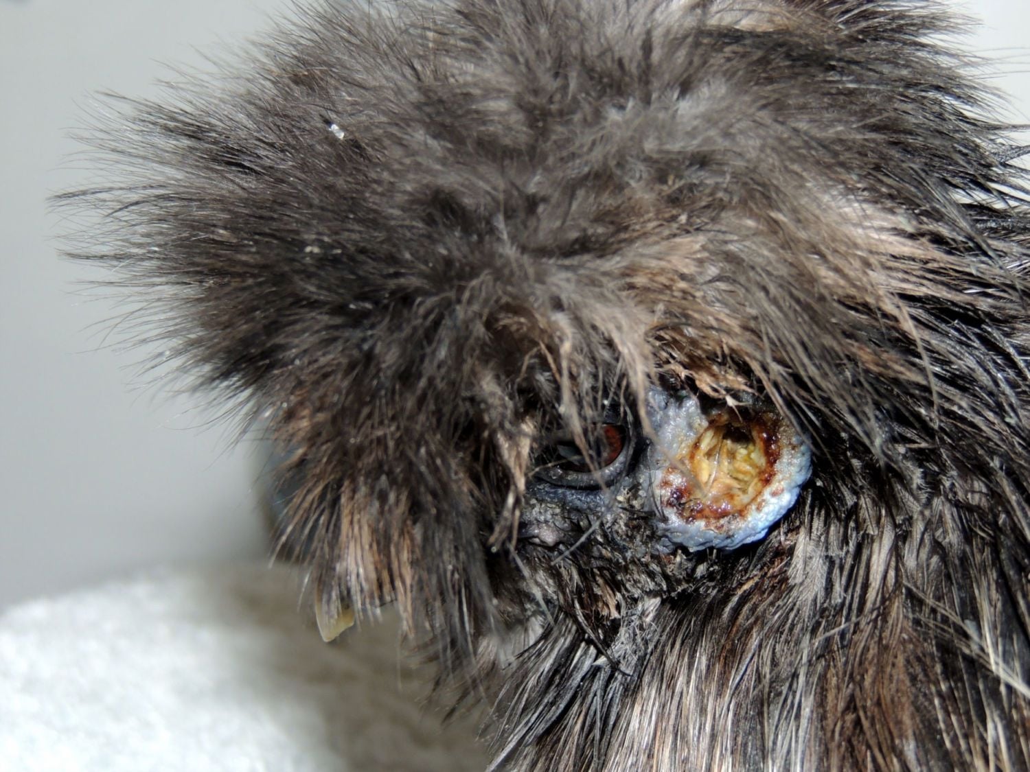 I clean it out every night with a warm peroxide/water solution, then pack the hole with neosporin. I put 100mg of Amoxicilling in her drinking water, along with vitamins. She is perking up well. This is what it looks like now