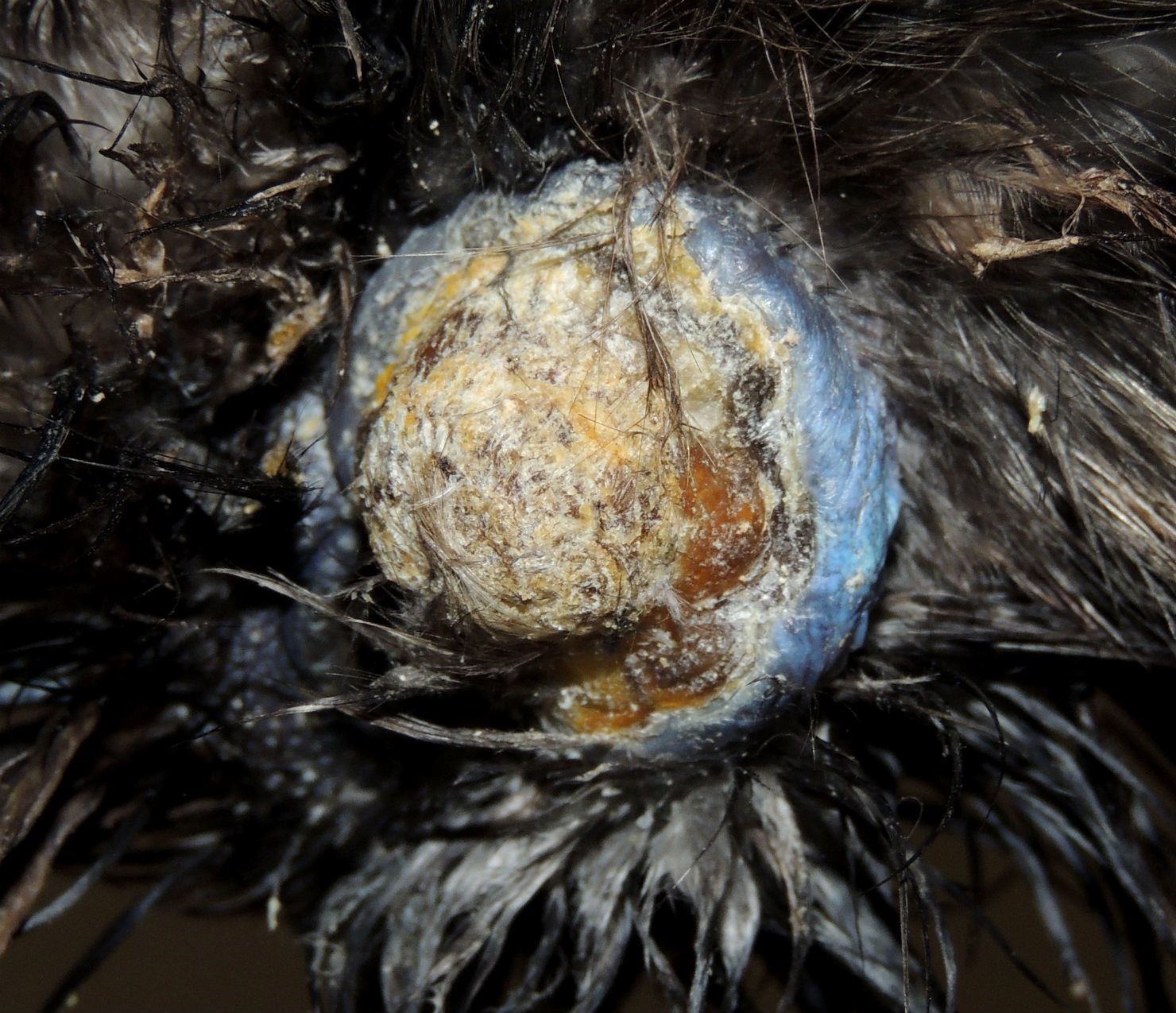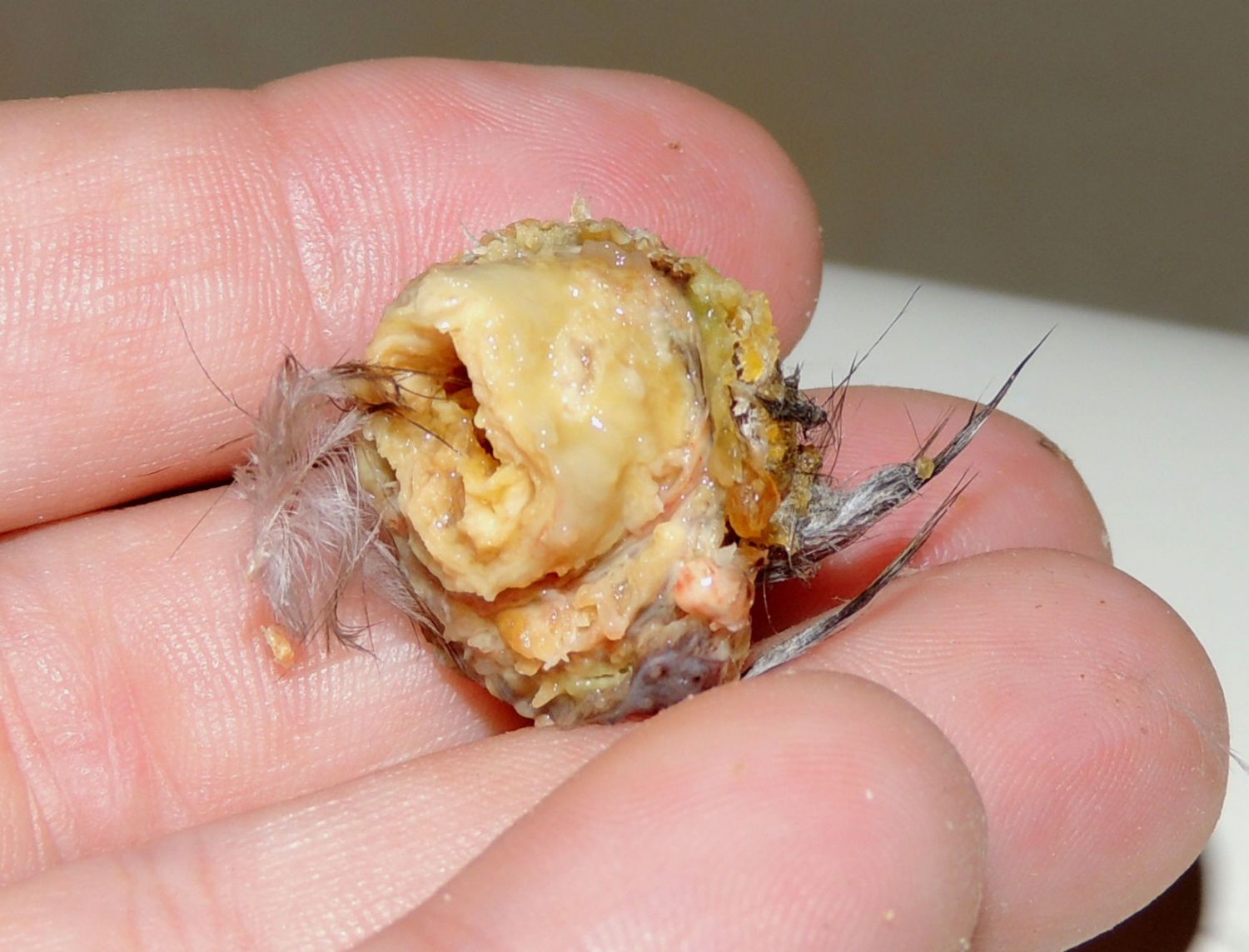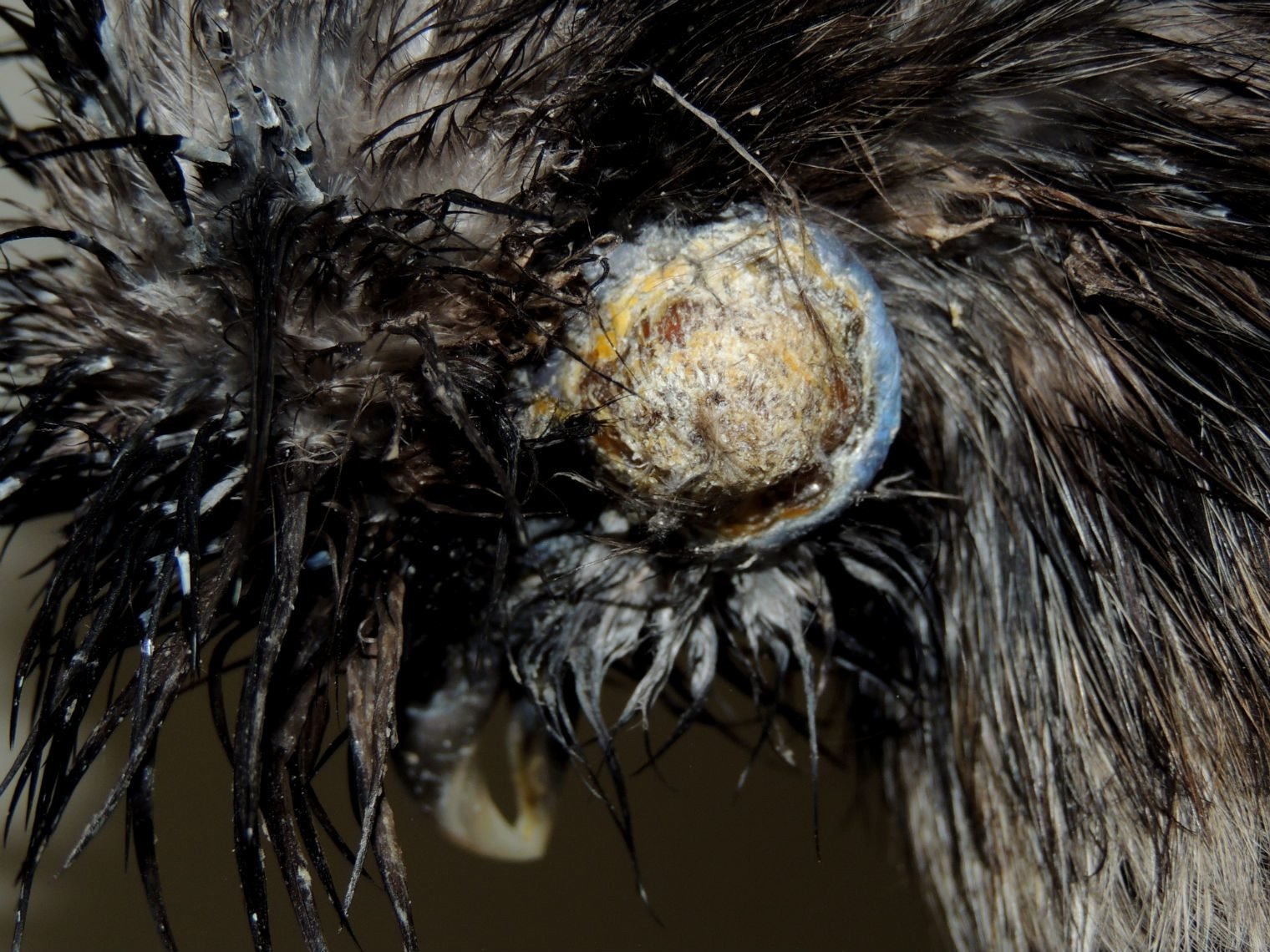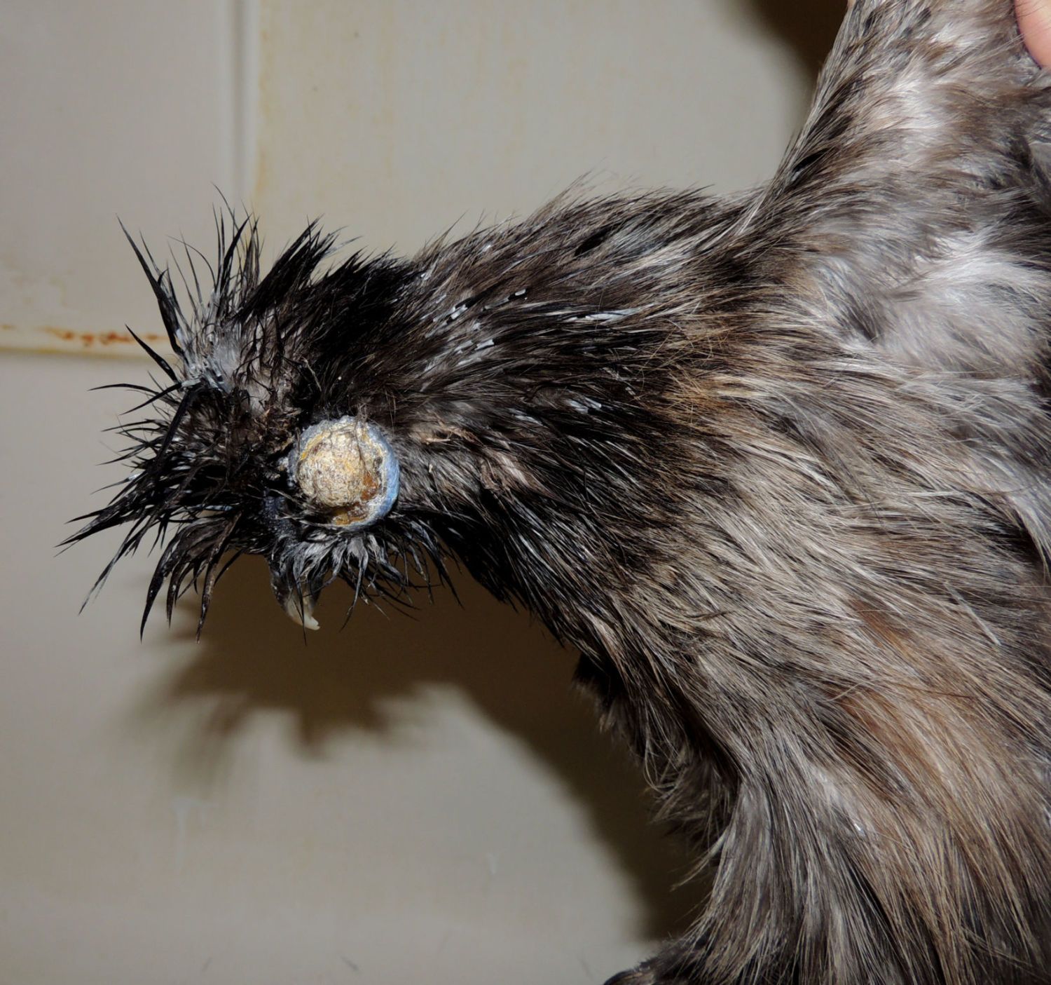 I clean it out every night with a warm peroxide/water solution, then pack the hole with neosporin. I put 100mg of Amoxicilling in her drinking water, along with vitamins. She is perking up well. This is what it looks like now