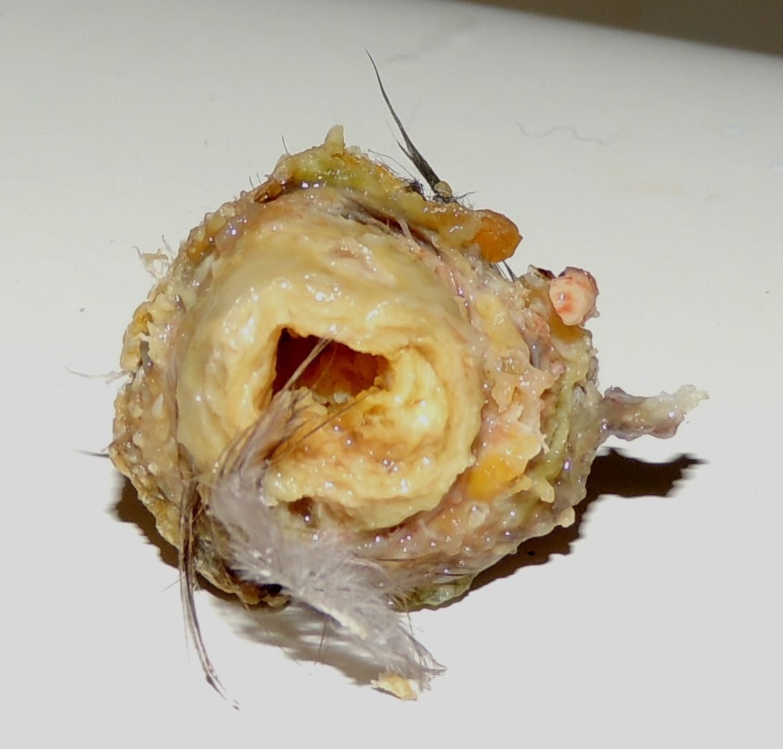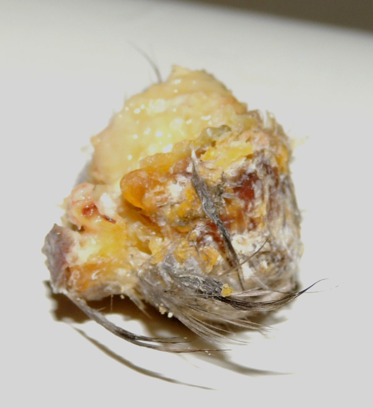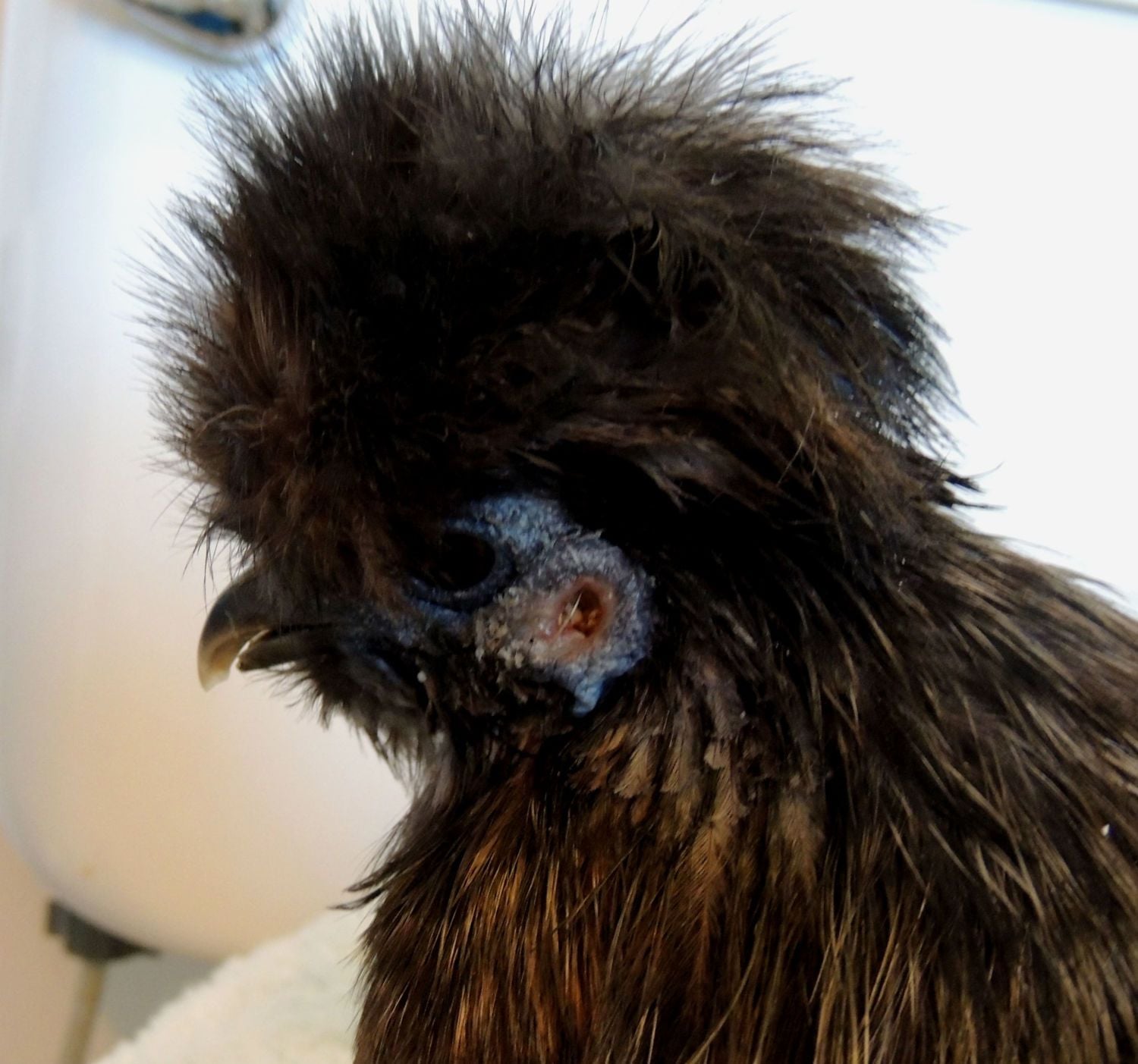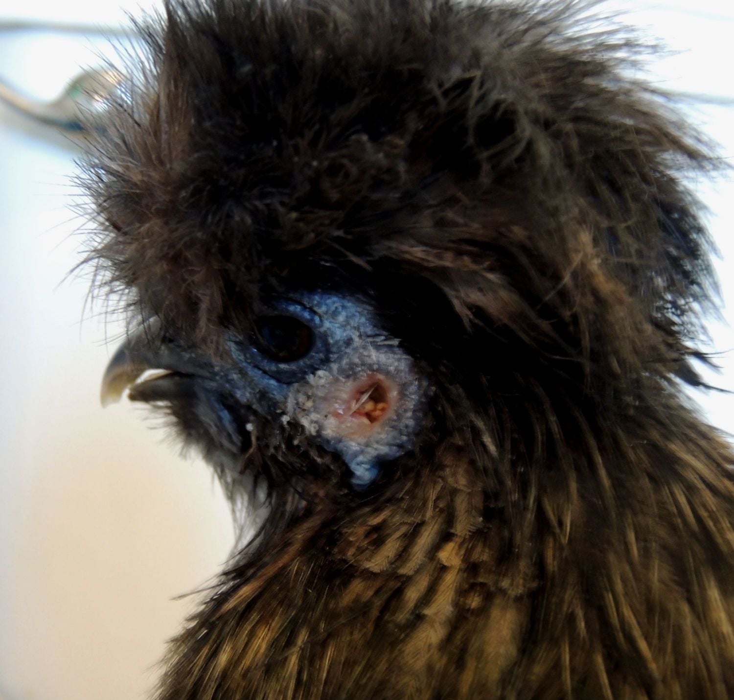 The other day I noticed this ugly, nasty "plug" in my Silkie's ear. Ewww. Poor baby. She must have had an ear infection going on for a long time. She is getting better now. But this is what it looked like: