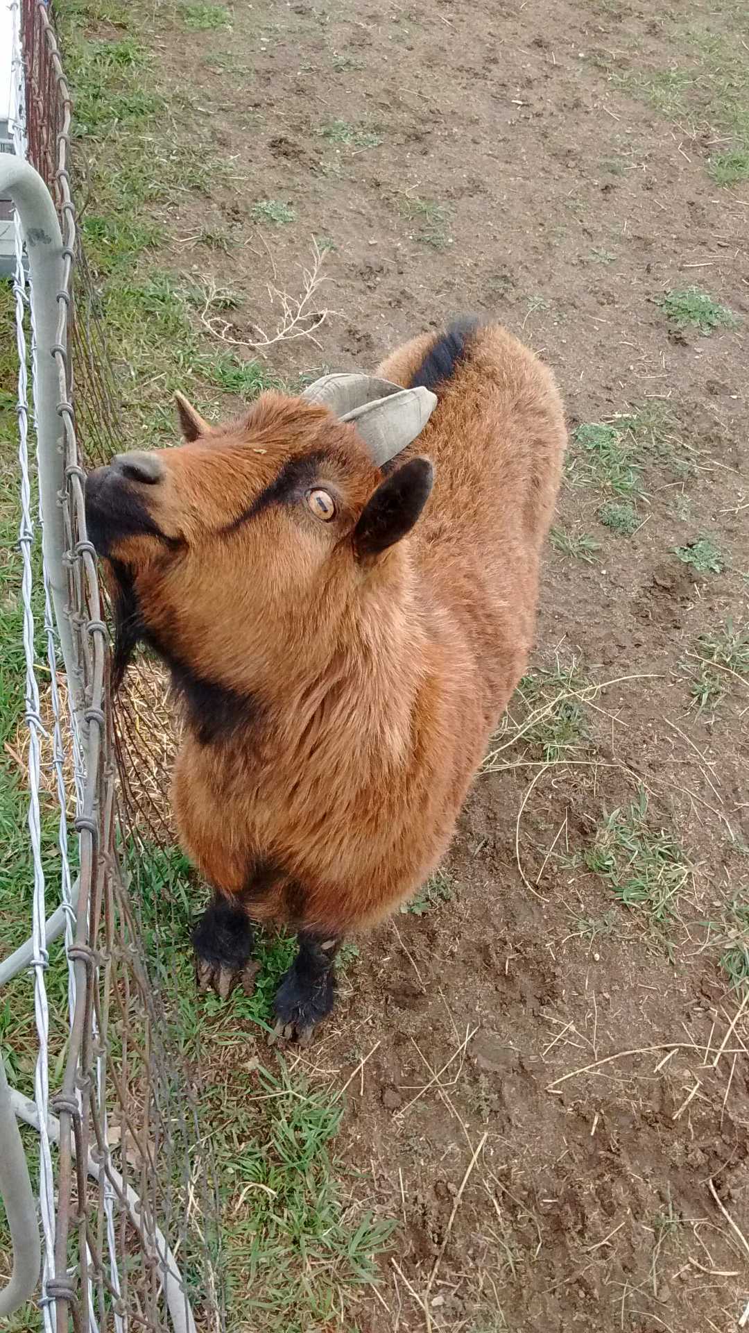 Another thing, you have him by himself. Goats need to be kept with another goat, preferably 2 or more. The more goats the happier they are. That is a fact. Since he is by himself he is lonely and sees you as part of the herd. This is dangerous thinking, since you are the owner and are not in fact part of the herd, you are the boss of the herd. If they see you as part of the herd they will want to challenge you to make sure they have their place above you in the pecking order. So you need to remind them that you are the boss, and not to be challenged. Many people do this by hitting the goat or shoving it. DONT do that. That reinforces their thinking that you are, in fact, a part of their herd. Since another goat would react in a similar way. What i do is I grab them tightly by their collar and just say NO. That way, it enforces the fact that I have control over them, but in a non violent way. I have heard other people spray them with water. One of my goats is really dependent on humans and calls whenever someone walks by. So what I did was when she tried to challenge me I simply walked away. She got really upset no one was there paying attention to her and I think she learned her lesson.