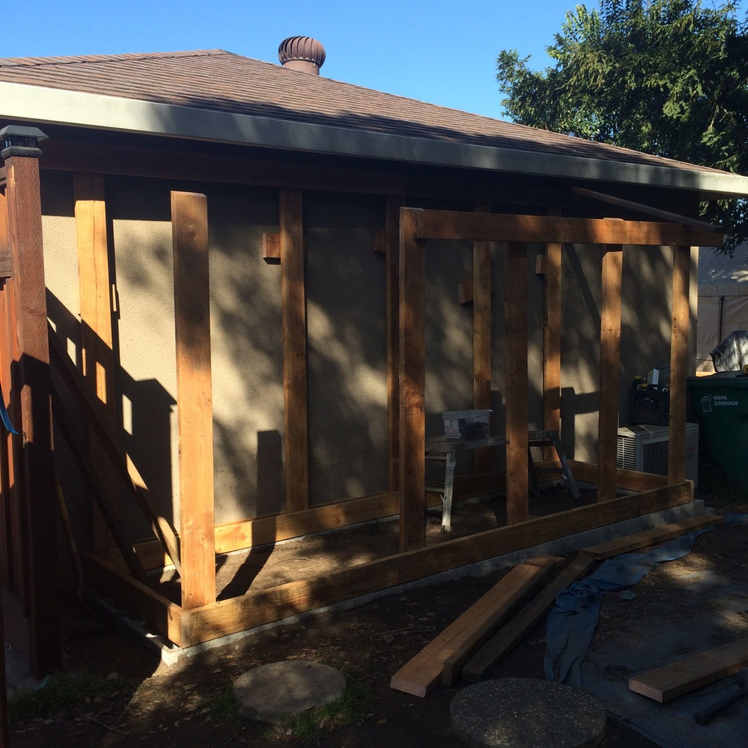 I had to figure out how to build it to keep it off the stucco on the garage. I made a spacer at the ground.