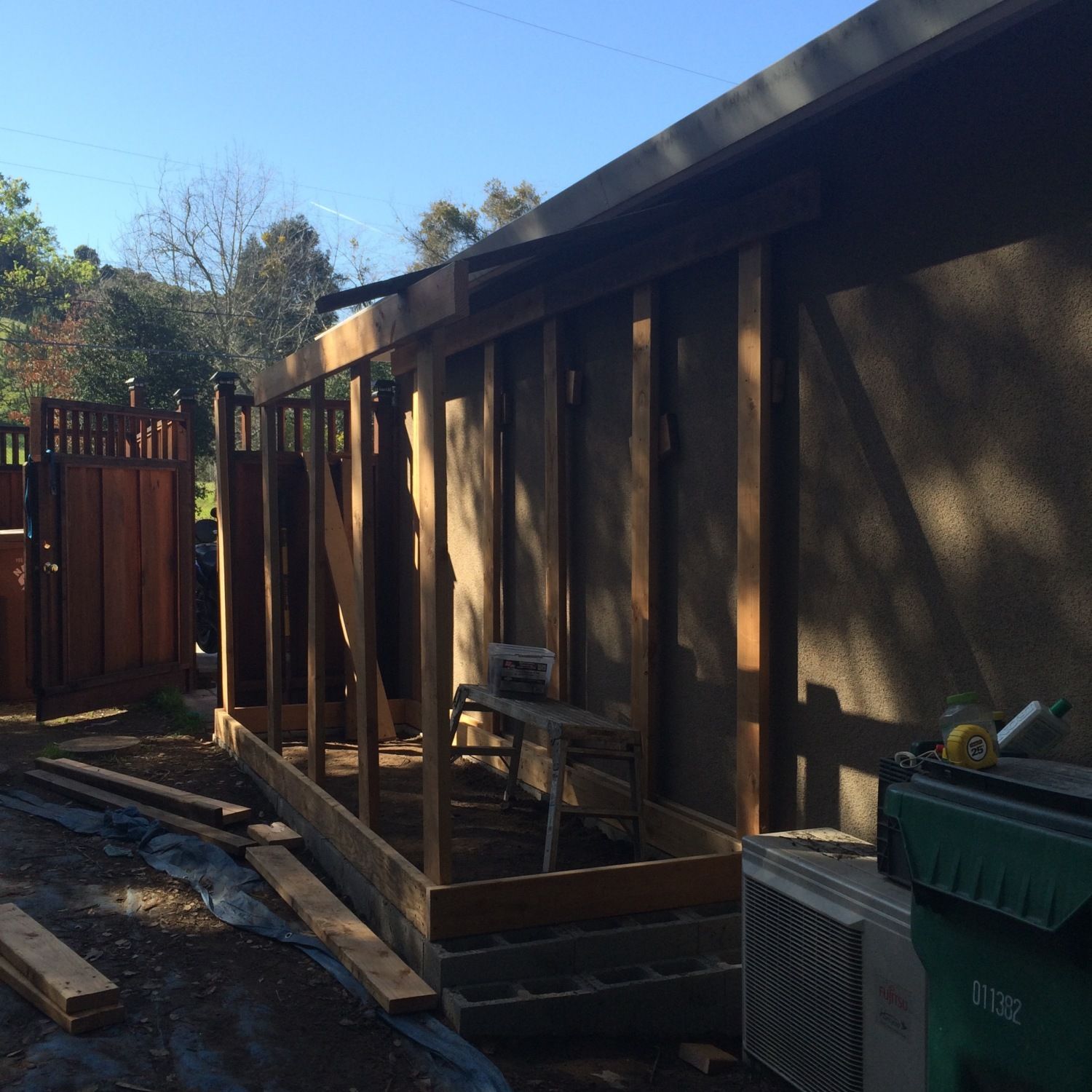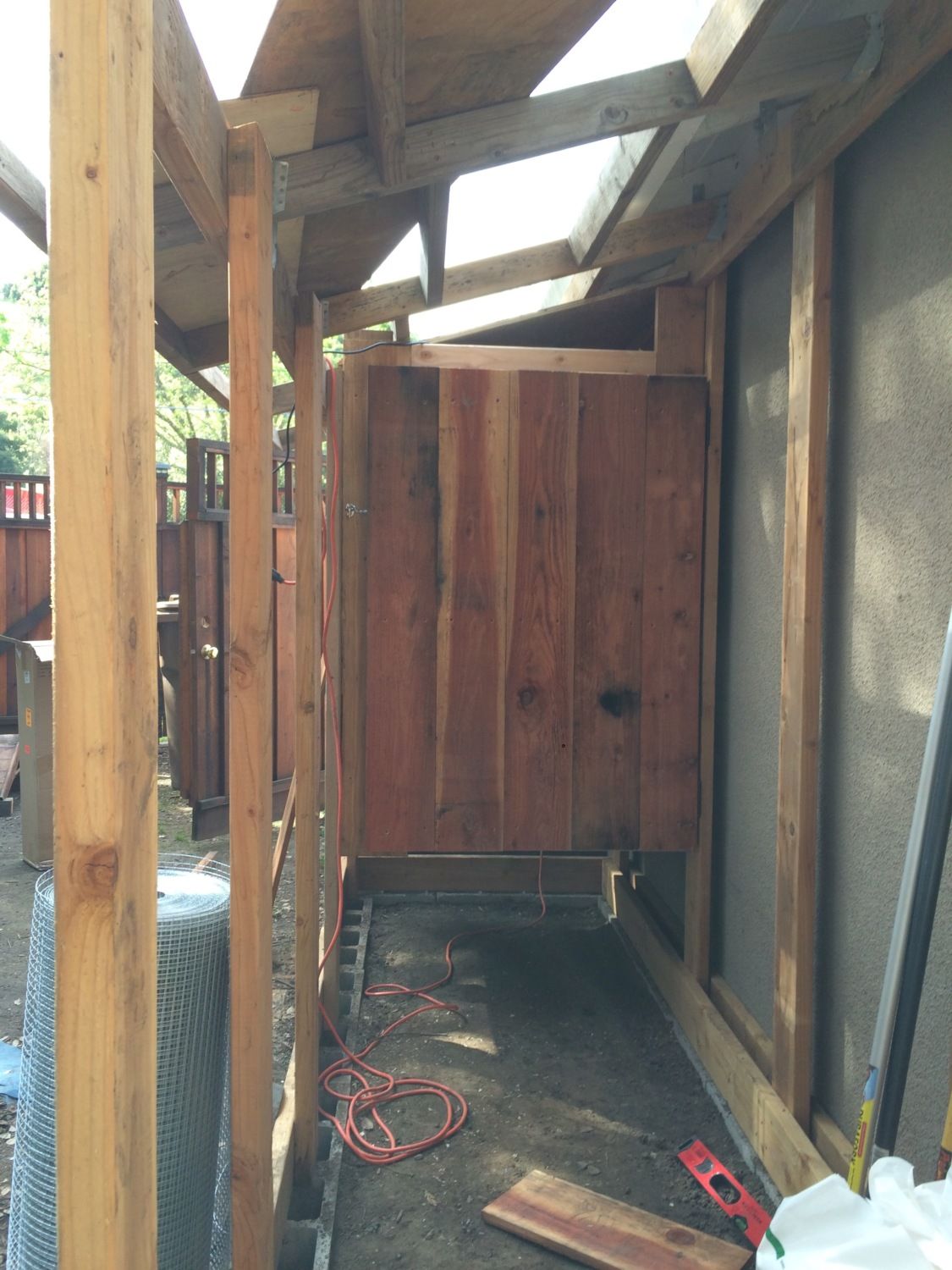 Got the idea to face with redwood we had left over from the fencing project.