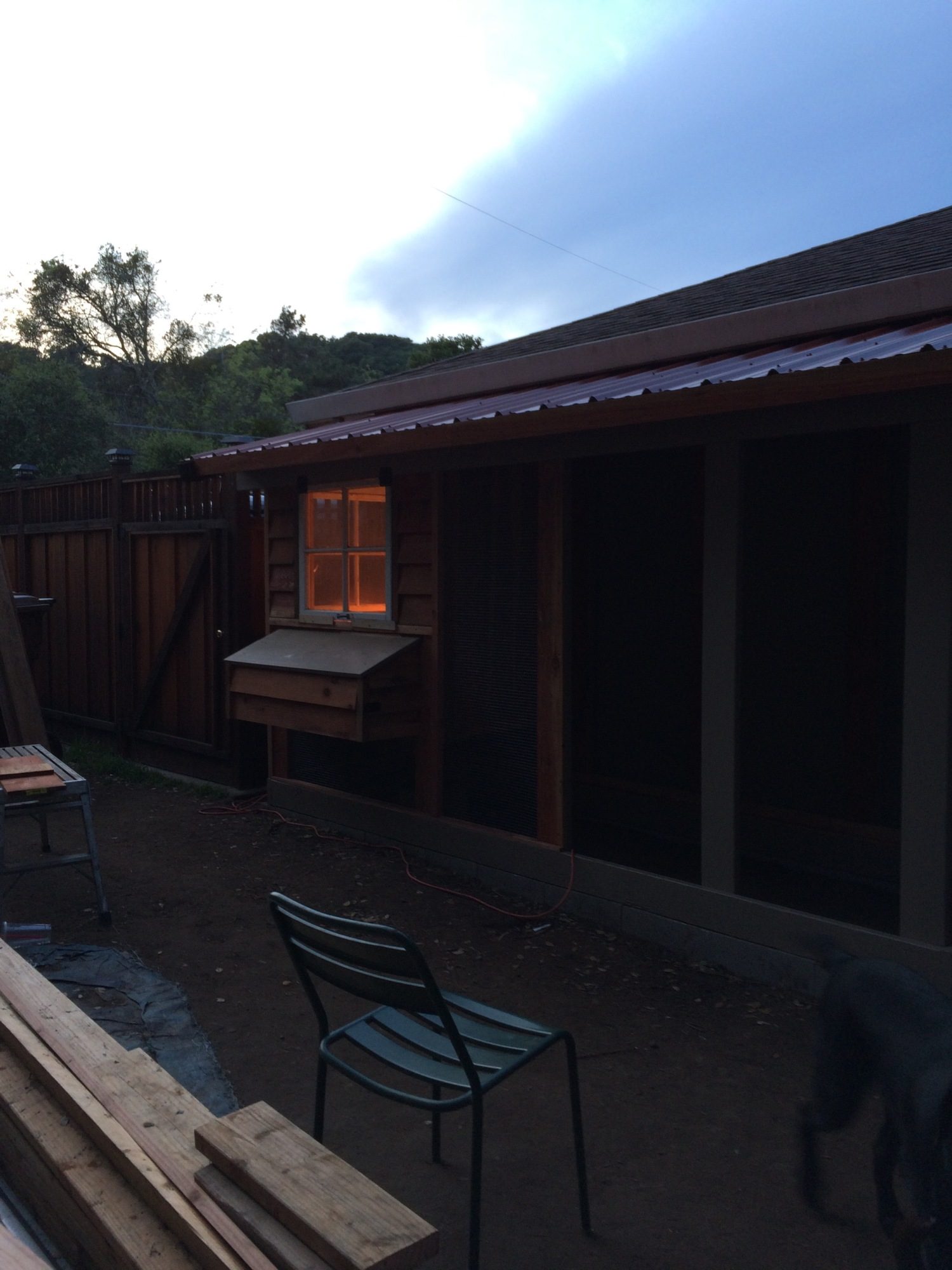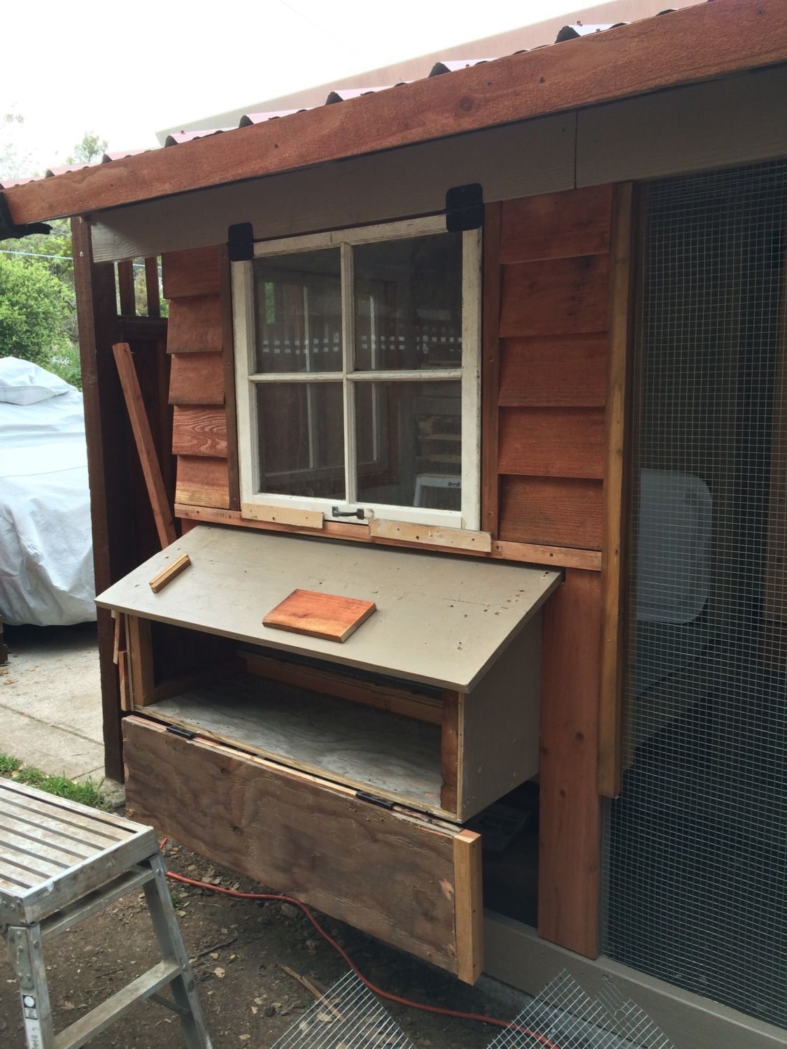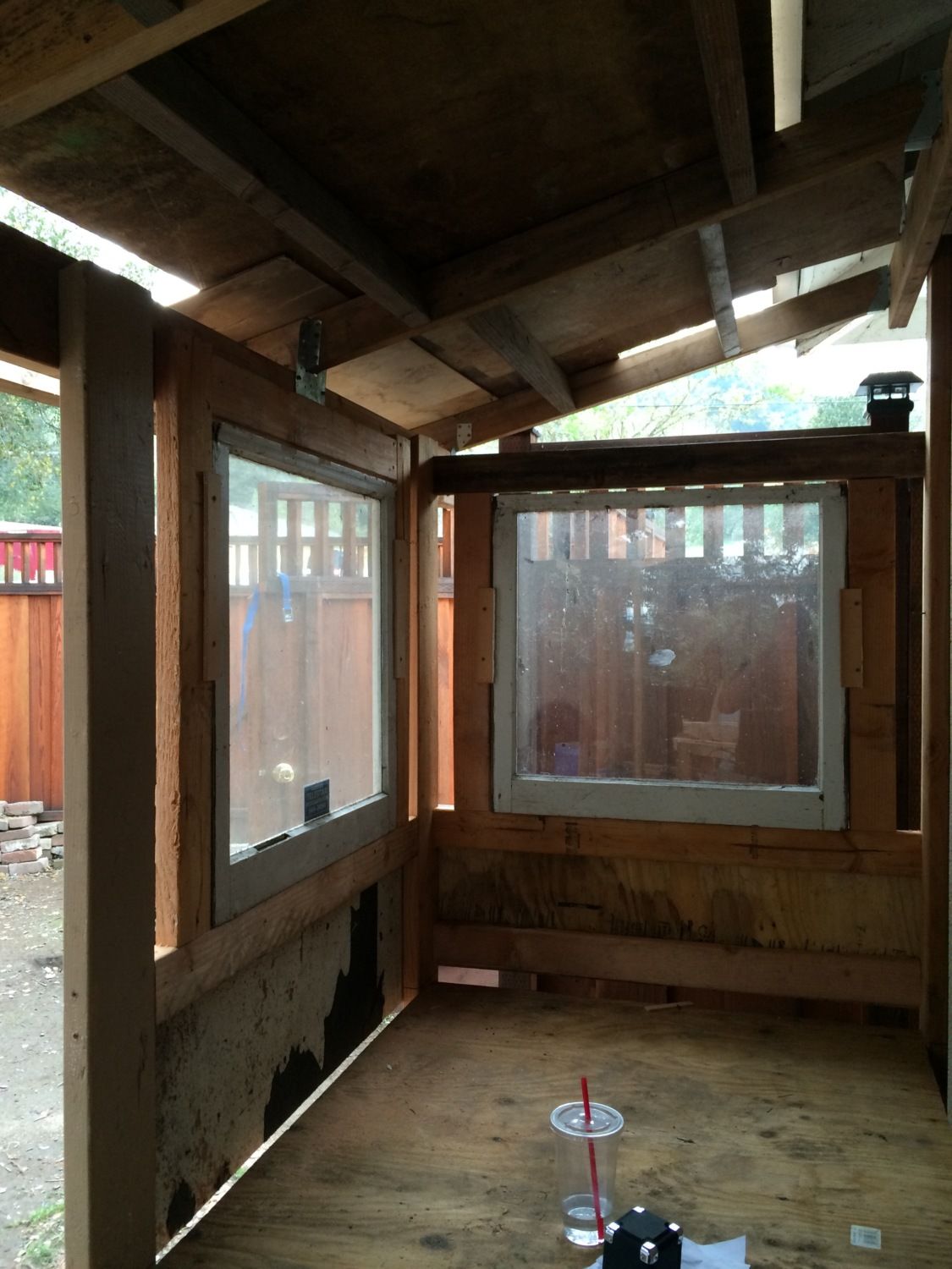 Put the plywood in the coop.
