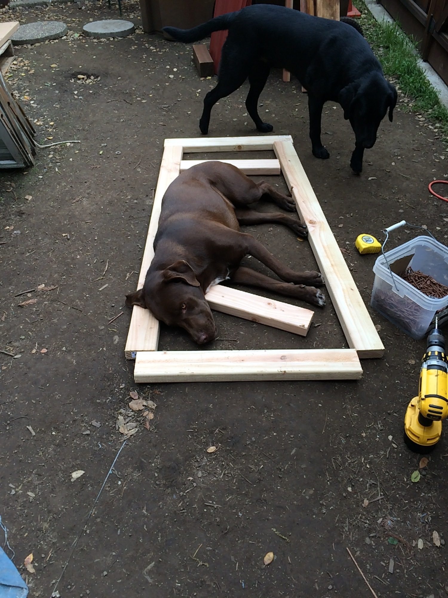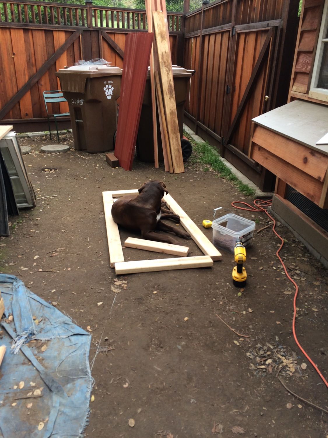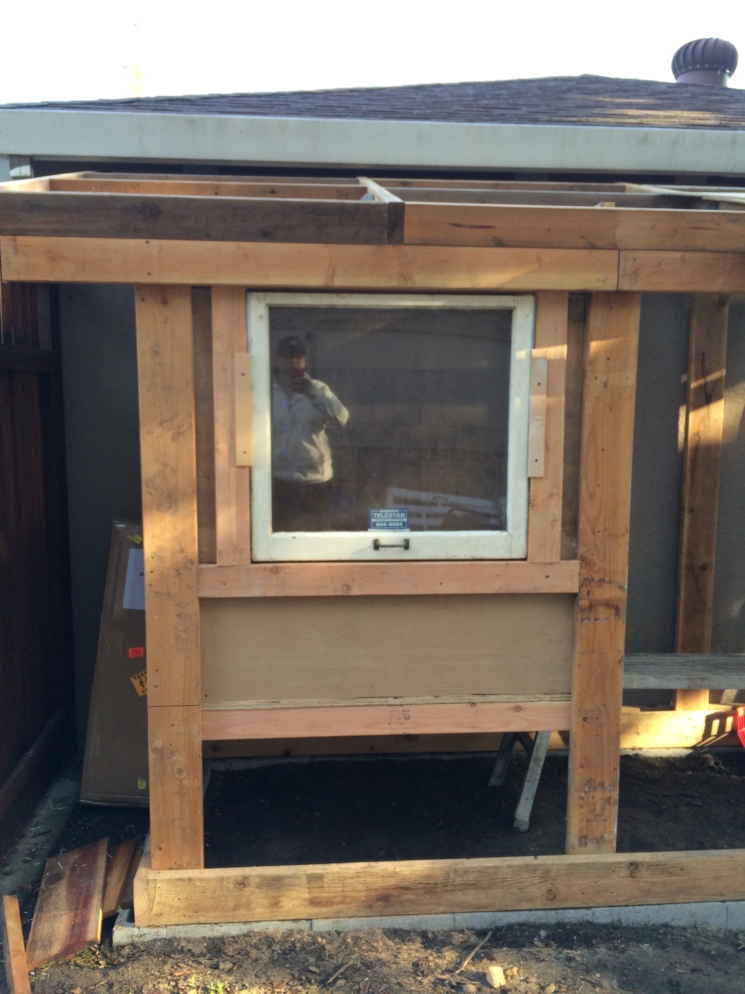 Framing out the chicken run door. Sophie has to be the center of my attention.