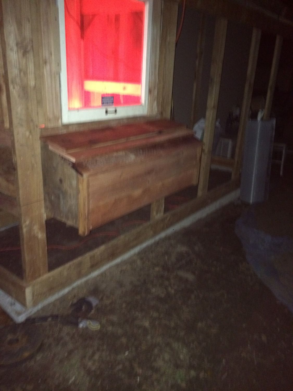 Framed in the floor of the chicken coop.