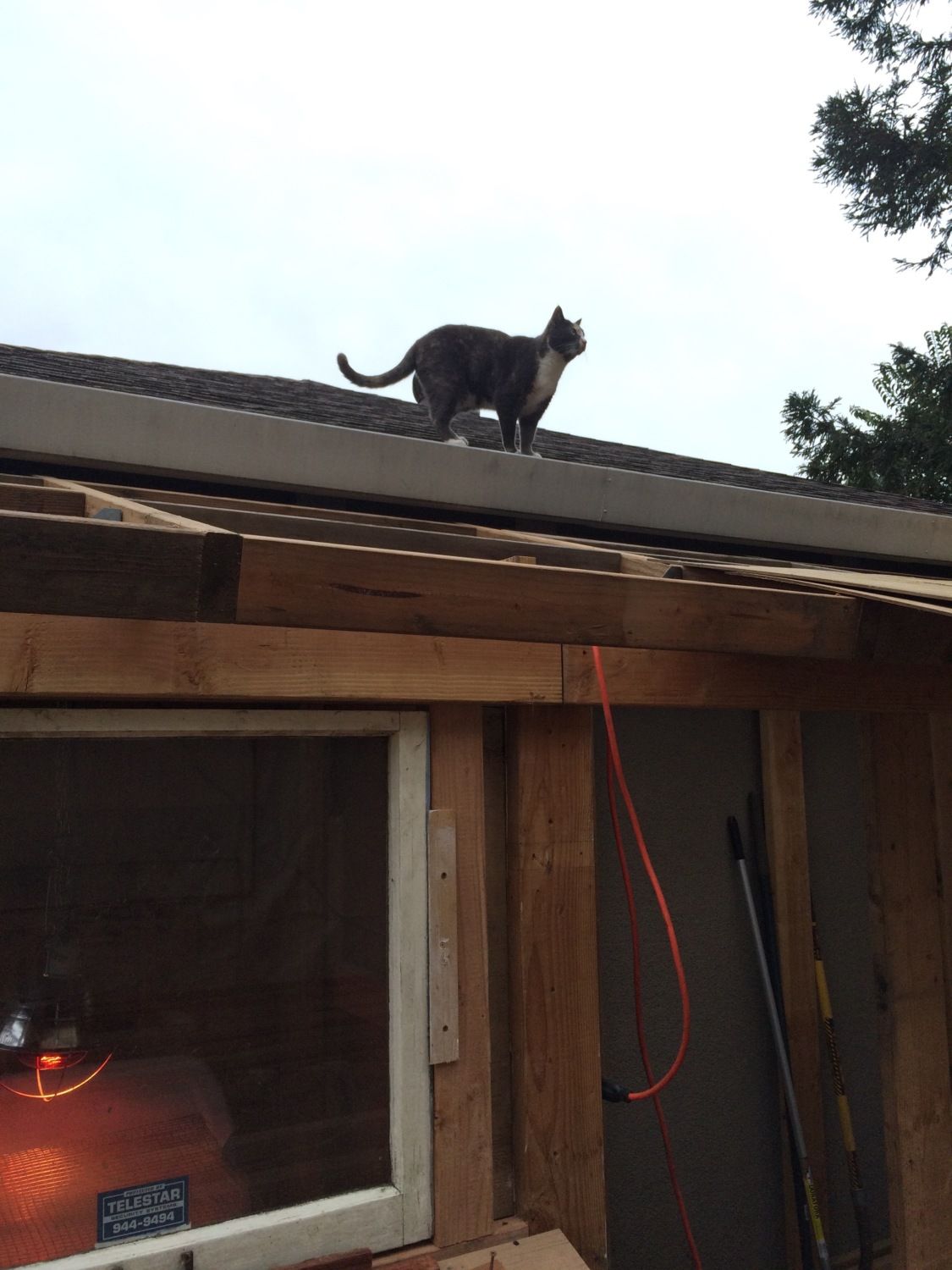The cat on the roof is Alley. She is more of an investigator than a helper.