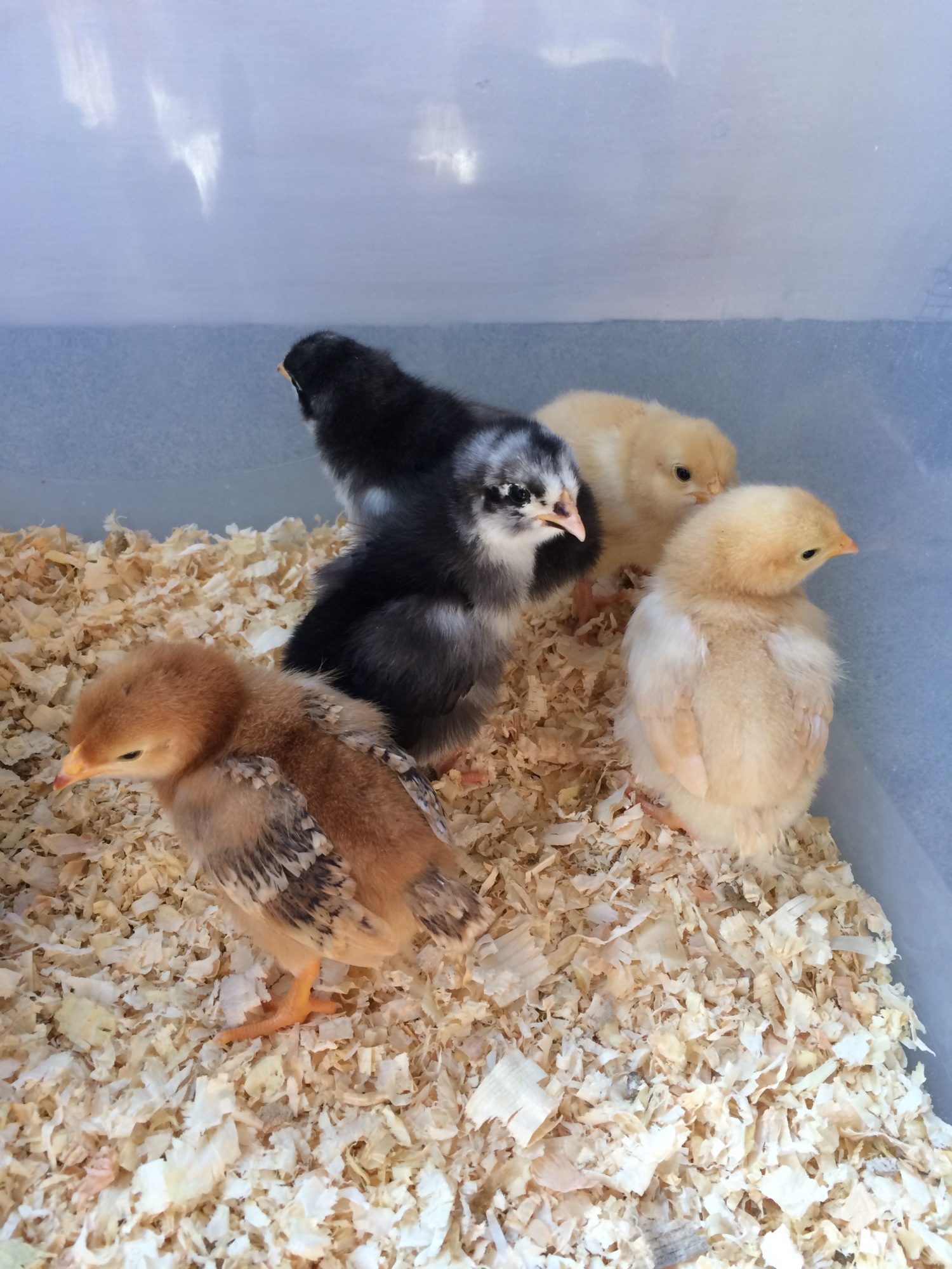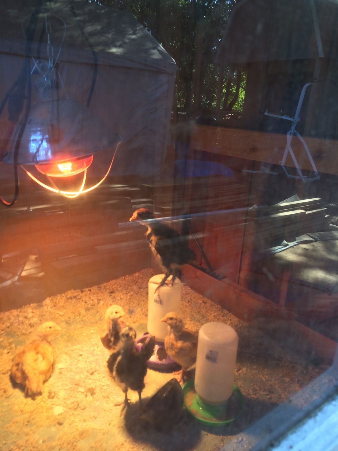 Motivation to finish my project! I jumped the gun and bought 6 chick. I purchased 2 black Australorps, 2 Rhode Island Reds, and 2 buff Orpintons.