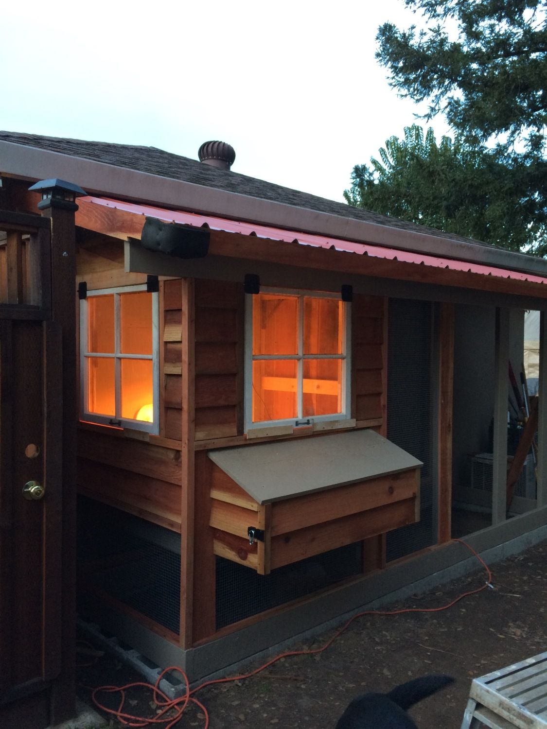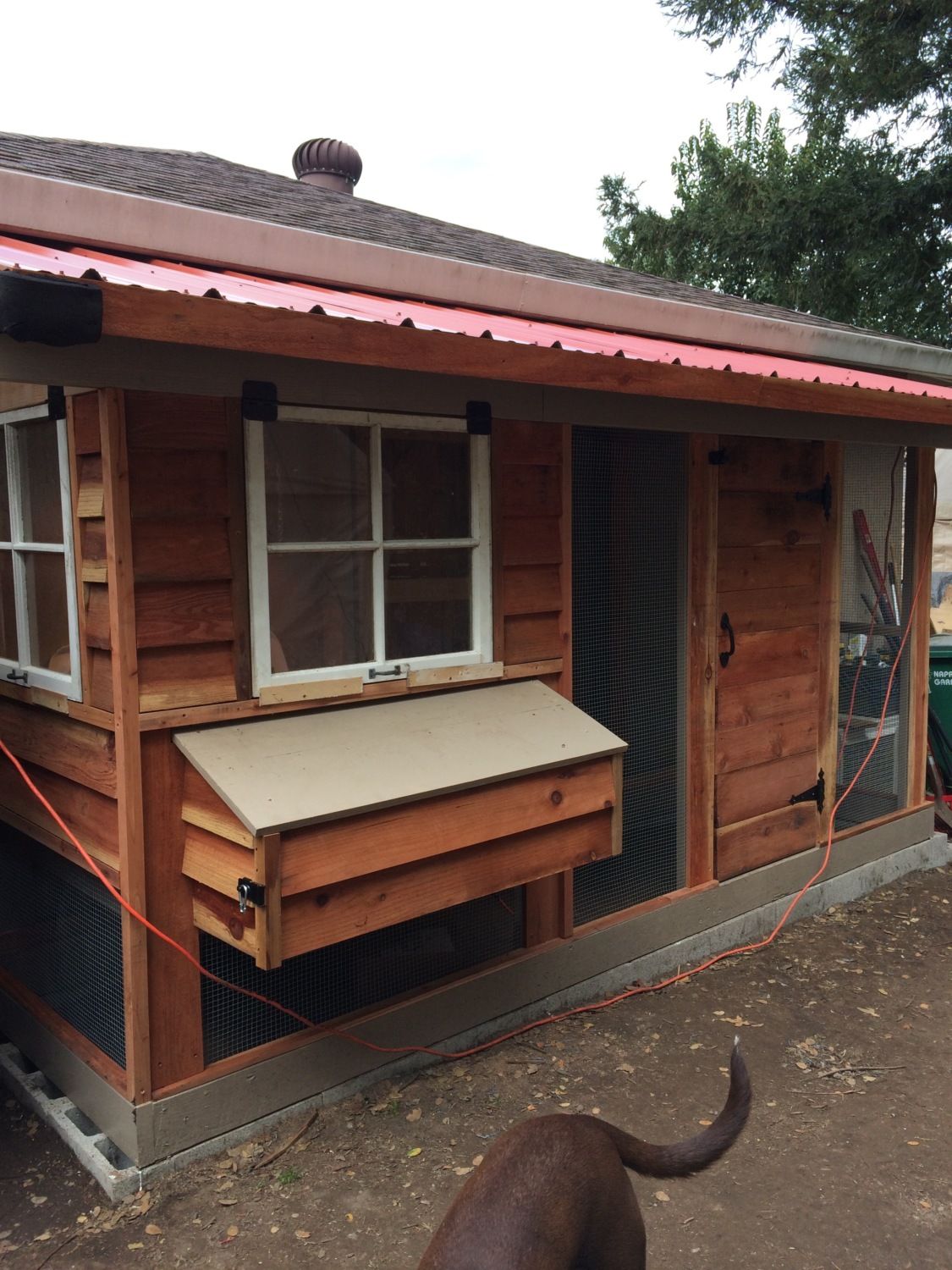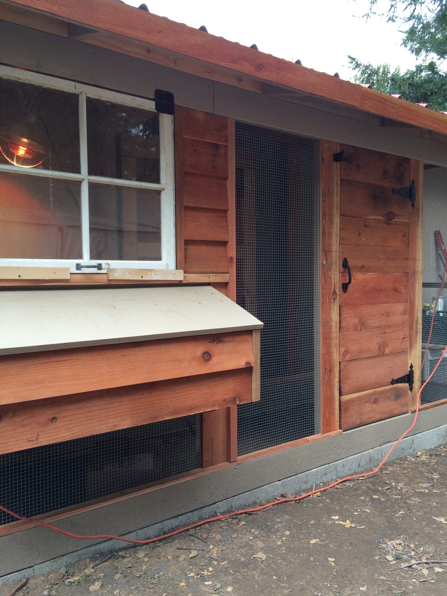 Chicken run door is installed. It turned out really nice. Also makes the coop feel balanced now. I attached redwood strips on the front of the 2x6 framing and it served to also protect the edging of the hardware cloth.