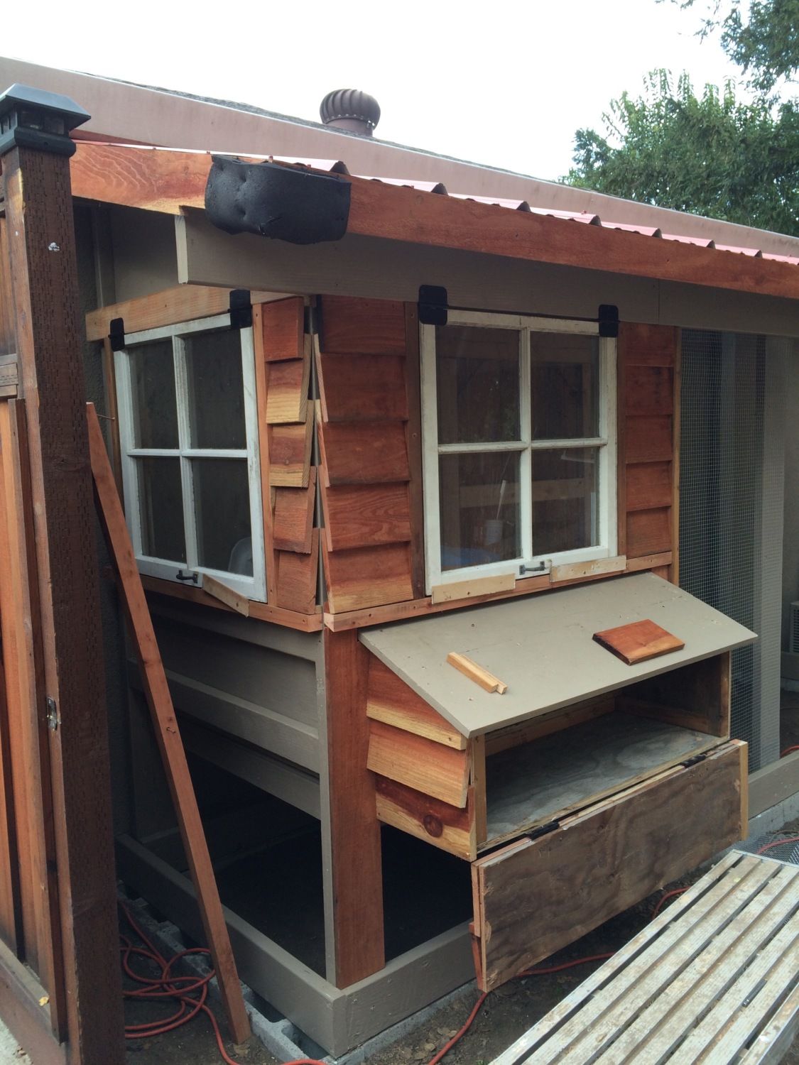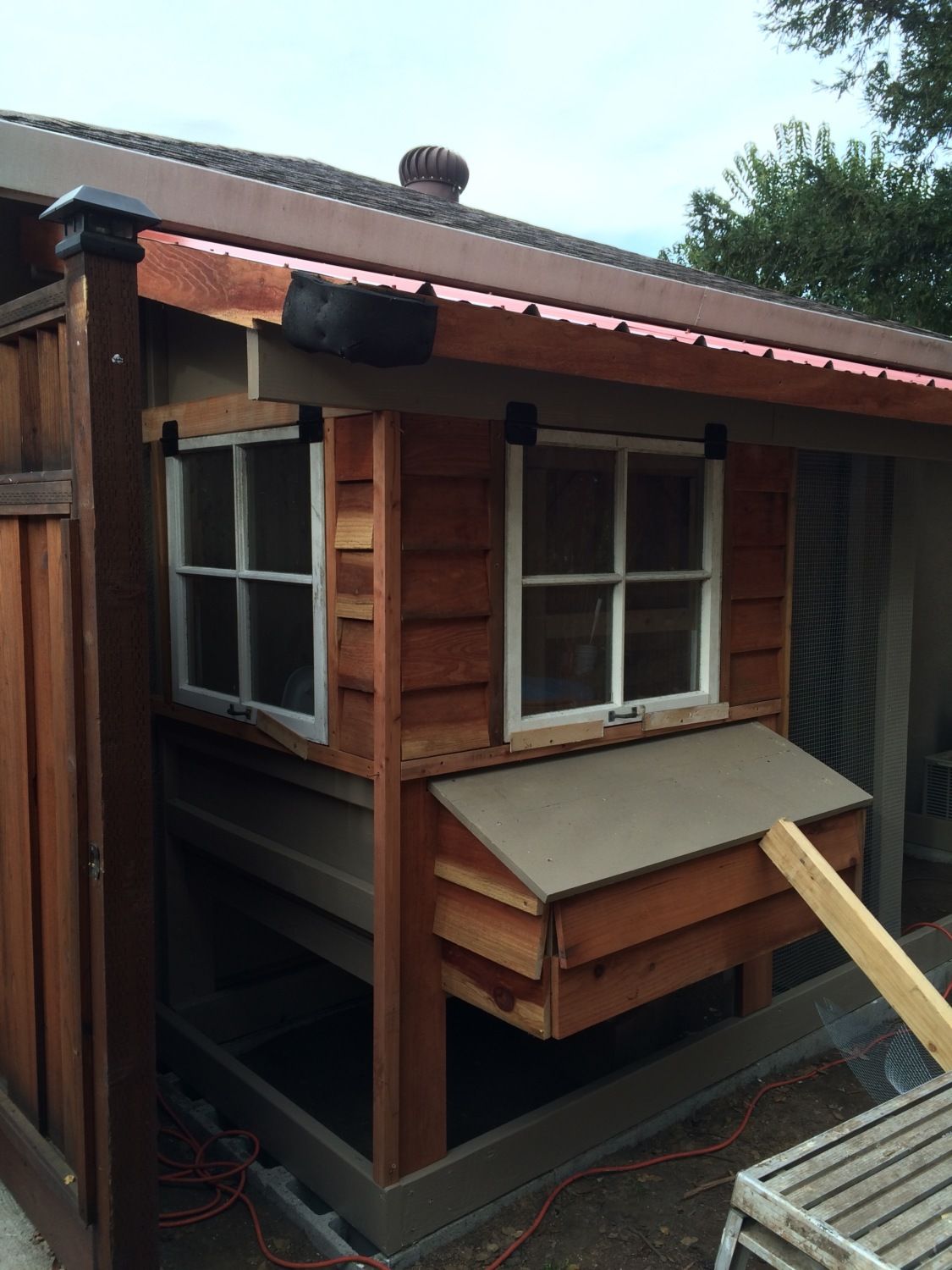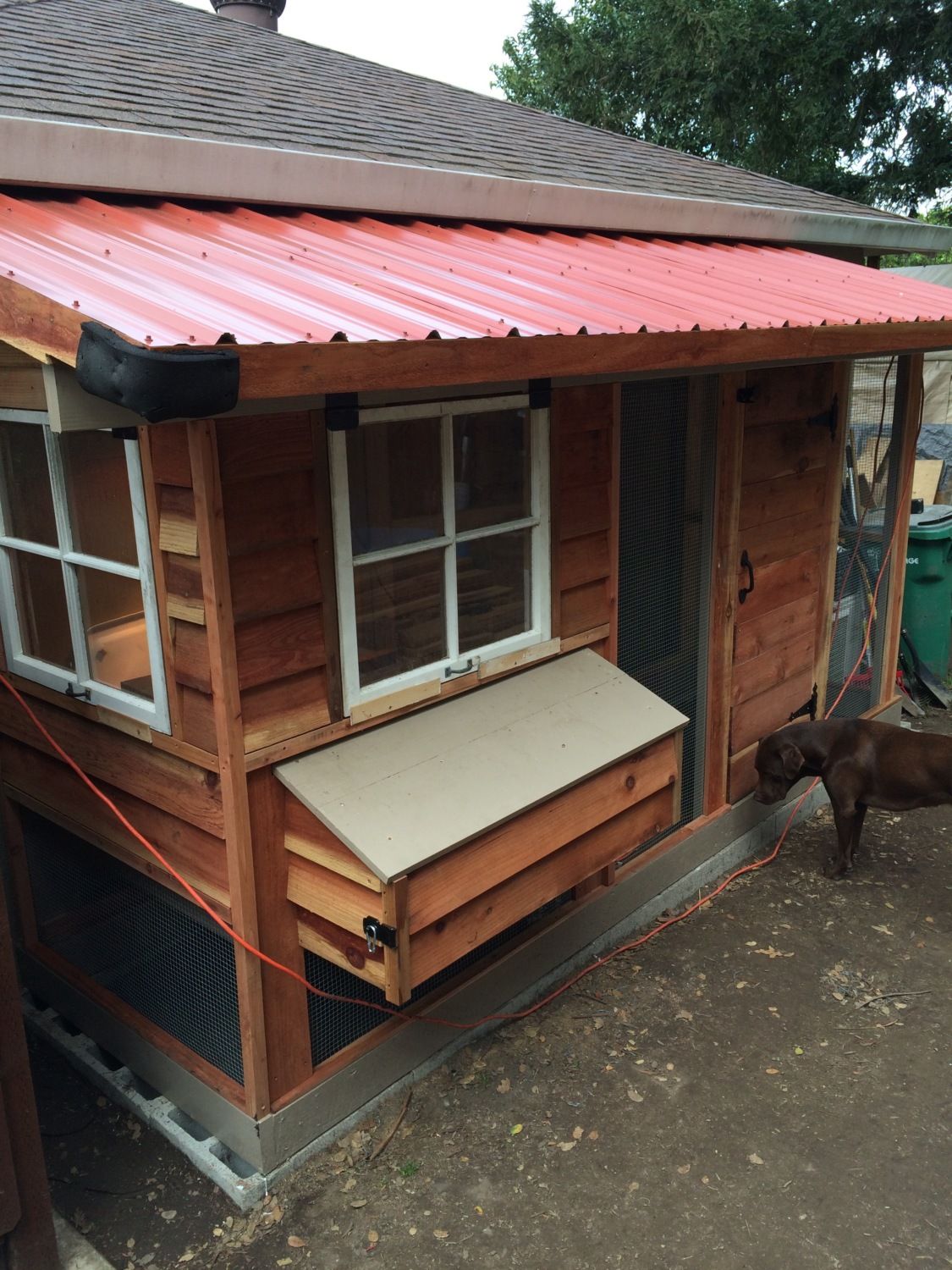 Chicken run door is installed. It turned out really nice. Also makes the coop feel balanced now. I attached redwood strips on the front of the 2x6 framing and it served to also protect the edging of the hardware cloth.