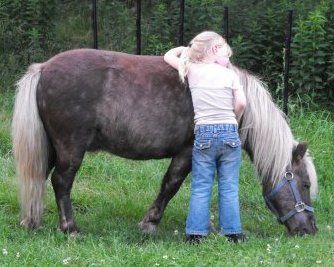He was actually a chocolaty dapple color but would shed out every spring a slightly different shade and his winter coat was always lighter. He was the sweetest little guy. I have tons of photos of them similar to this and one of my favorites was him laying down with her sitting beside him petting his face. He adored her.
