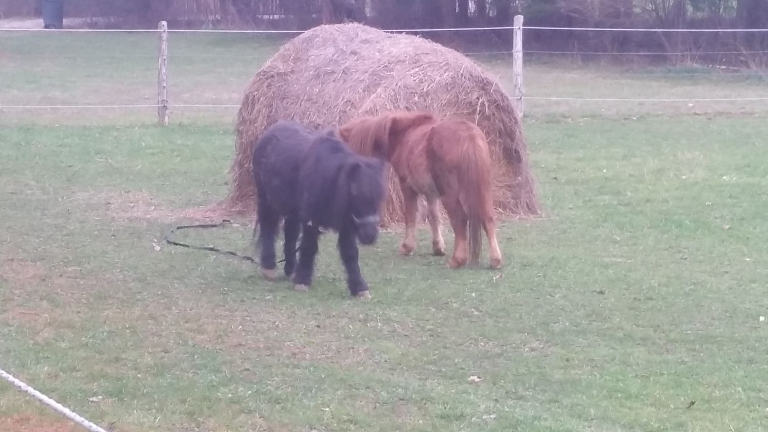 introducing 2 geldings who have been unable to get along since being gelded over 2 years ago. Finally yesterday they accepted each other. Left a lunge line on the one in case of having to rescue one from the other and I was out there the whole time with them. Only one fight broke out that I had to intervene. The rest were a couple kicks and over with.