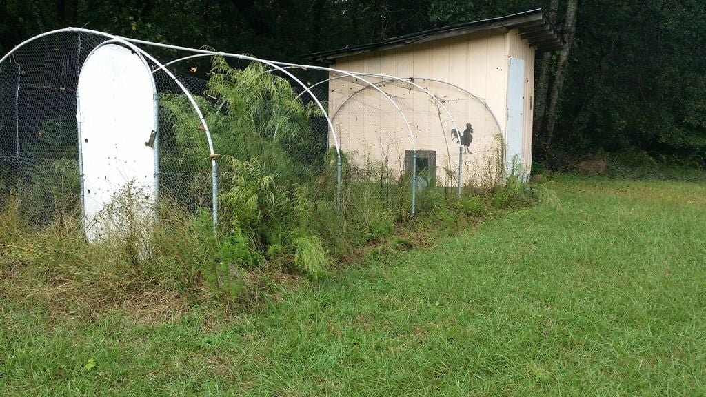 What are things I need to focus on with the coop before adding residents? Getting the door to close properly and the ceiling beams at the top, for sure. How much of that overgrown mass of vegetation in the run would actually be able to be eaten by chickens? I'm thinking not much, but wanted to ask to be sure.