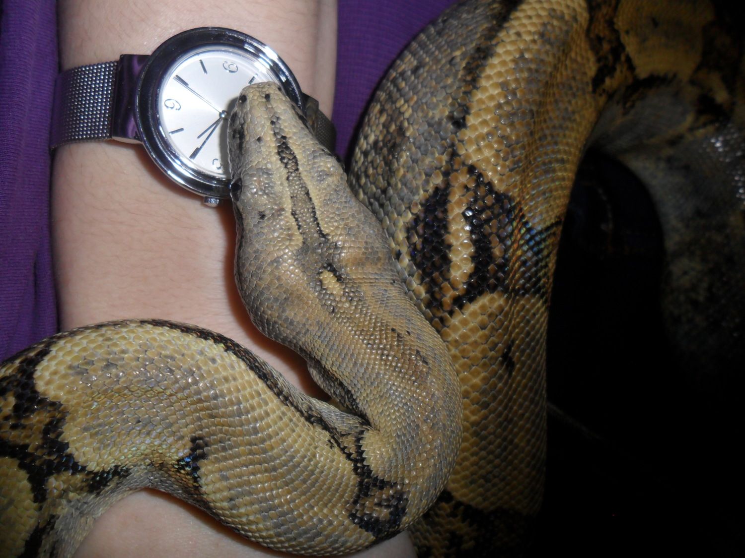 Here, you can see how small snake's teeth are! And yes... There is a cable in his mouth... I had to play thug-o-war with him...