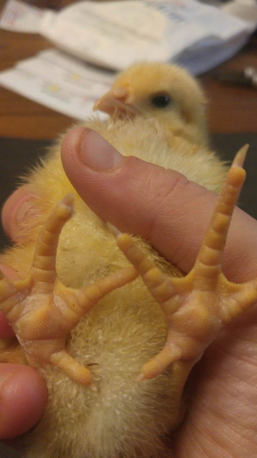 With that, I wanted to get some feedback on the newest guy I've rescued from my local TSC. I know it's at least 9 days old. The chick is having foot issues. He does walk on both feet some but he rests a lot and will kinda hobble about. I was wondering if it's possible bumblefoot?