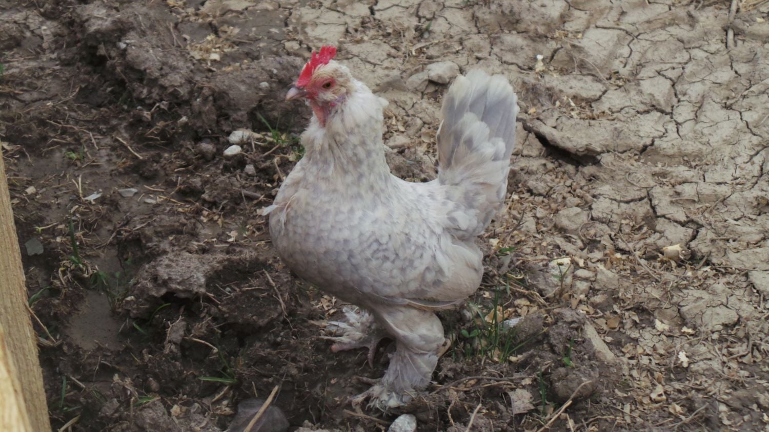 She's a very pretty bird- sad how some people could be cruel like that and chickens to other chickens- our lil curly Sue grew up with the first bunch that attempted to kill her and yet they still did so- after she healed we tried putting her with her own kind think maybe that was the problem - no go again - so since it's hard to keep just 1 bird separated we had her basically raise chicks- she made sure they knew she was boss but never hurt them - all wise fine until this last batch we had her in 4 roosters appeared and being she was broody at the time we didn't know what was happening until we caught them in the act- so yet again we had to hurry and rescue her from the lil flock we put her in hoping she could finally become part of a flock- I think the problem is that she's just so passive that she doesn't defend herself she just lets them do what they do to her- right now she is in with a petite d'uccle rooster who also received the same fate from his siblings - curly Sue put next to other like frizzles is about 2-3 times smaller than them so that may be the cause of the issue along with her very passive personality- even tho she has gone through all that she has, she is still just as sweet as she was day 1 - which breaks my heart for her - as she can never be put with other flocks unless they are chicks and her size - she at times loves being alone but then again she so wants to be with other birds that we just can't do